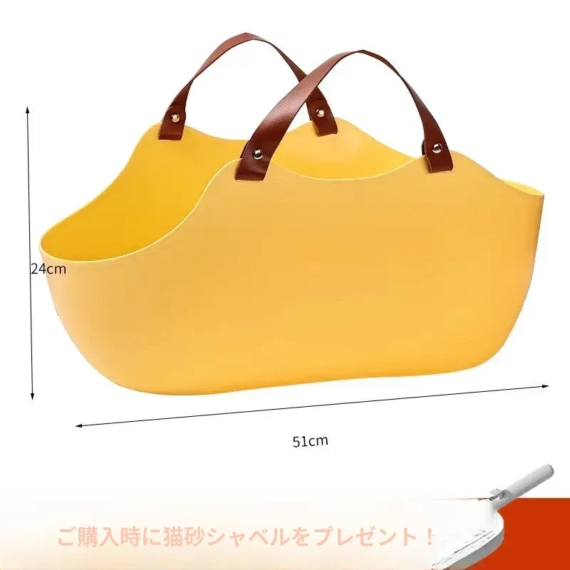 【猫砂スコップ付き】黄色手提げ猫砂盆