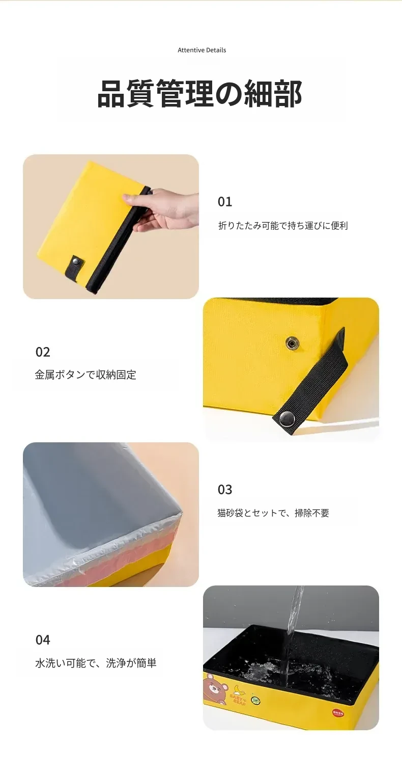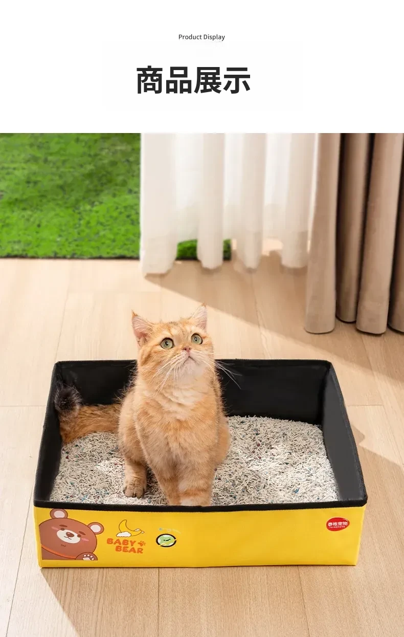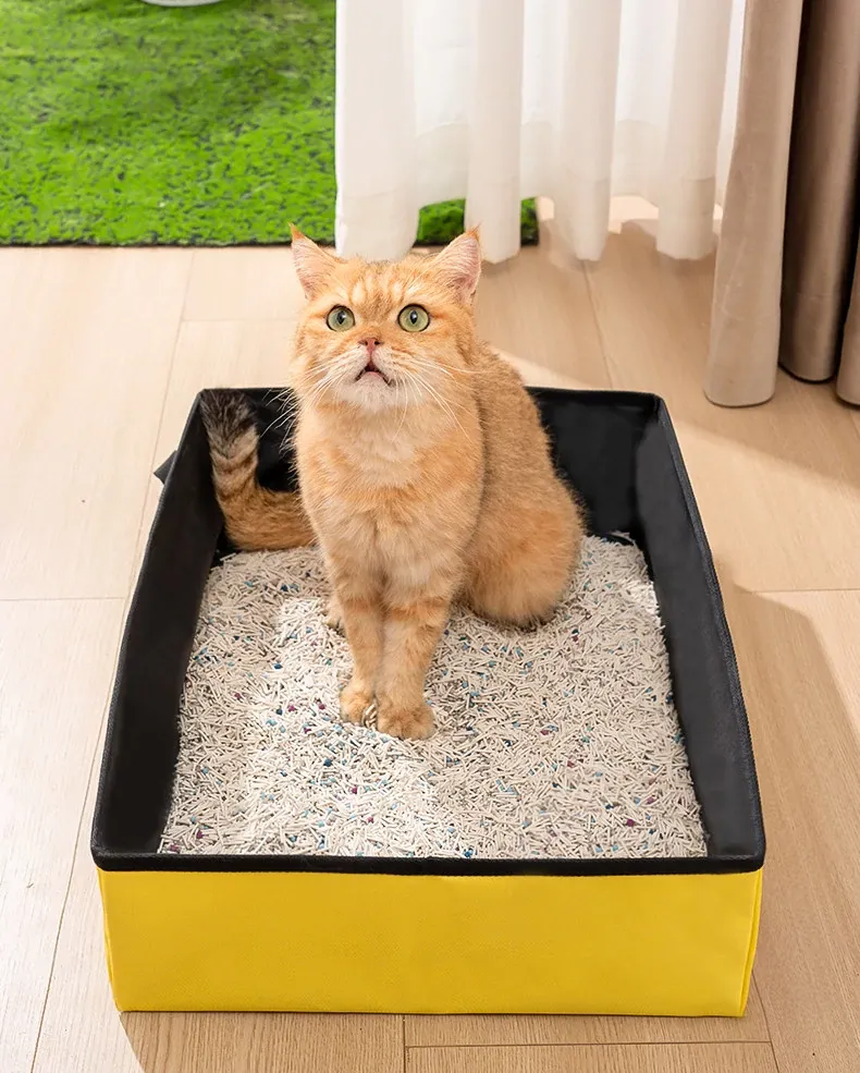 携帯型折りたたみ式猫トイレ - オープンデザインで防水仕様、アウトドアや車内でも使える大容量使い捨て猫砂盆!お出かけや旅行に最適な便利アイテム!