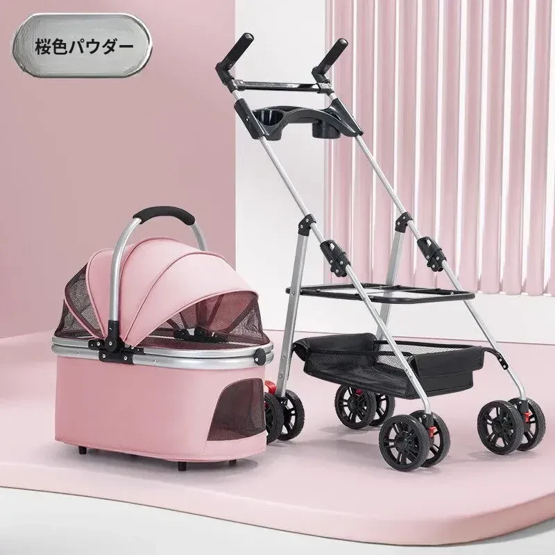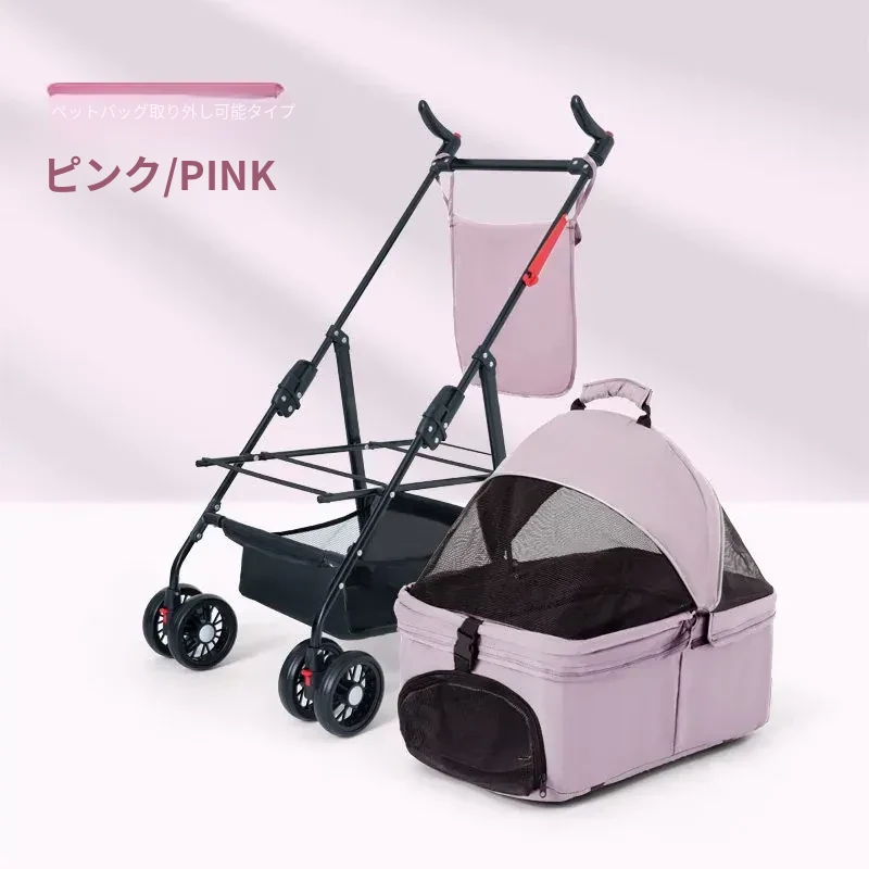 ピンクのハイエンドモデル(アルミ合金フレーム/ワンボタンダブルブレーキ/取り外し可能なバスケット)推奨体重60ポンド以下のペット