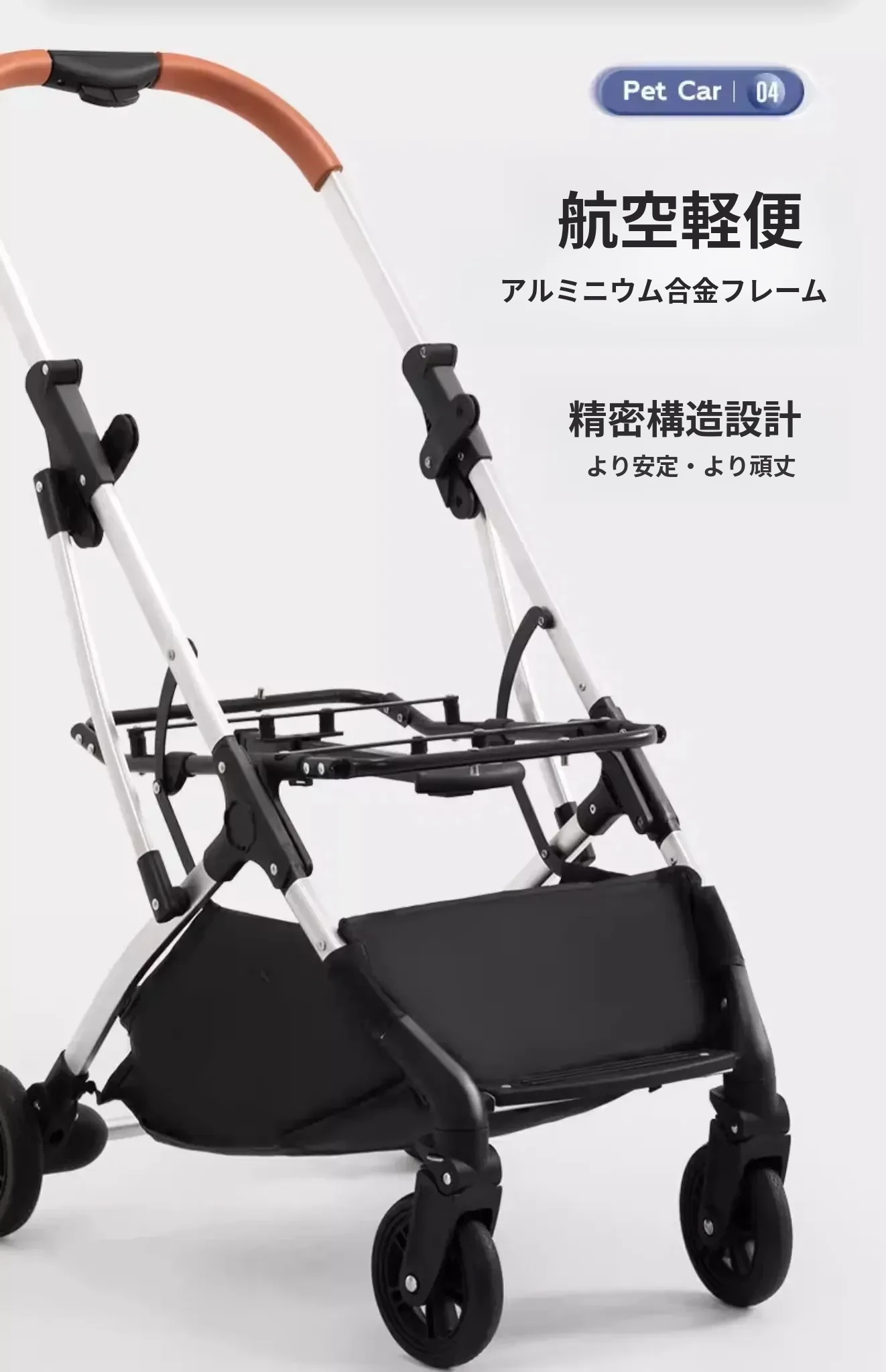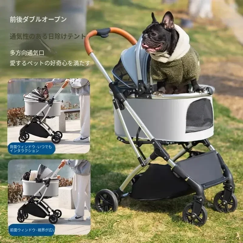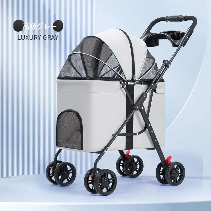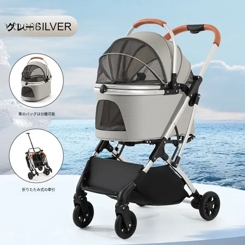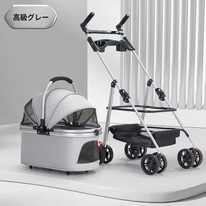 灰色のハイエンドモデル(アルミ合金フレーム/ワンボタンダブルブレーキ/取り外し可能なバスケット)推奨体重60ポンド以下のペット