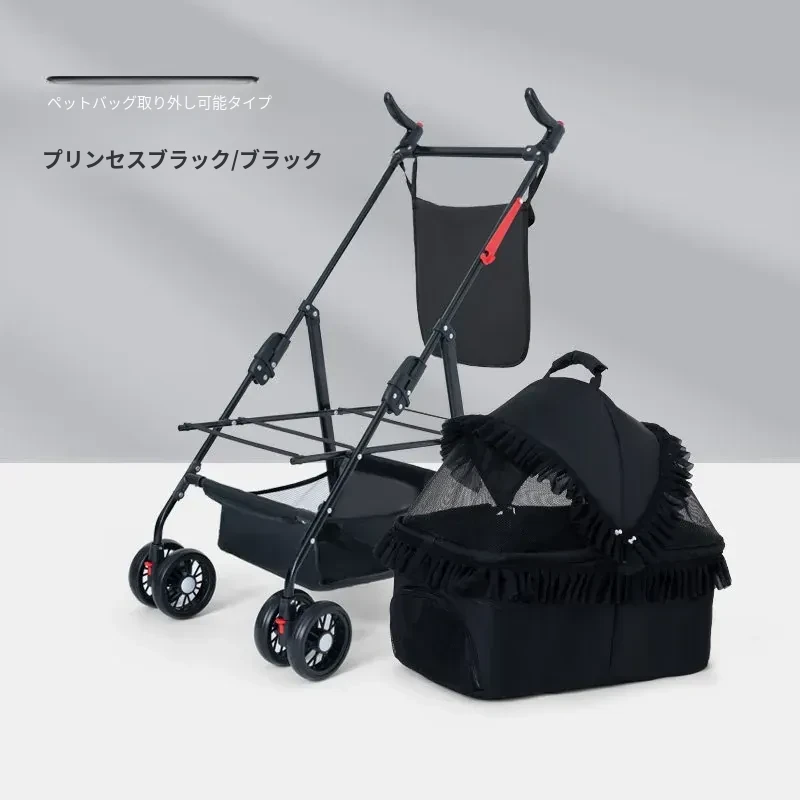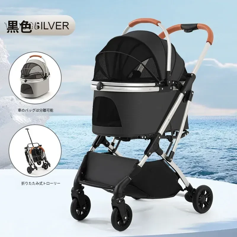 黒色のハイエンドモデル(アルミ合金フレーム/ワンボタンダブルブレーキ/取り外し可能なバスケット)推奨体重60ポンド以下のペット