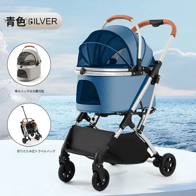 青色キャリーバッグ(アルミ合金フレーム/ワンボタン収納/取り外し可能なバスケット)推奨体重60ポンド以下のペット