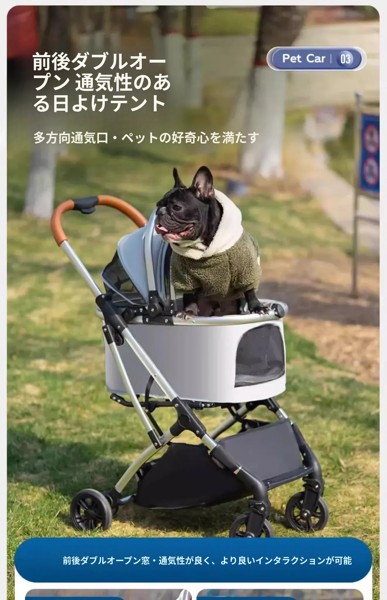 ダークブルー【折りたたみ可能・分離型 ママバッグ付き】推奨体重40ポンド以下のペット