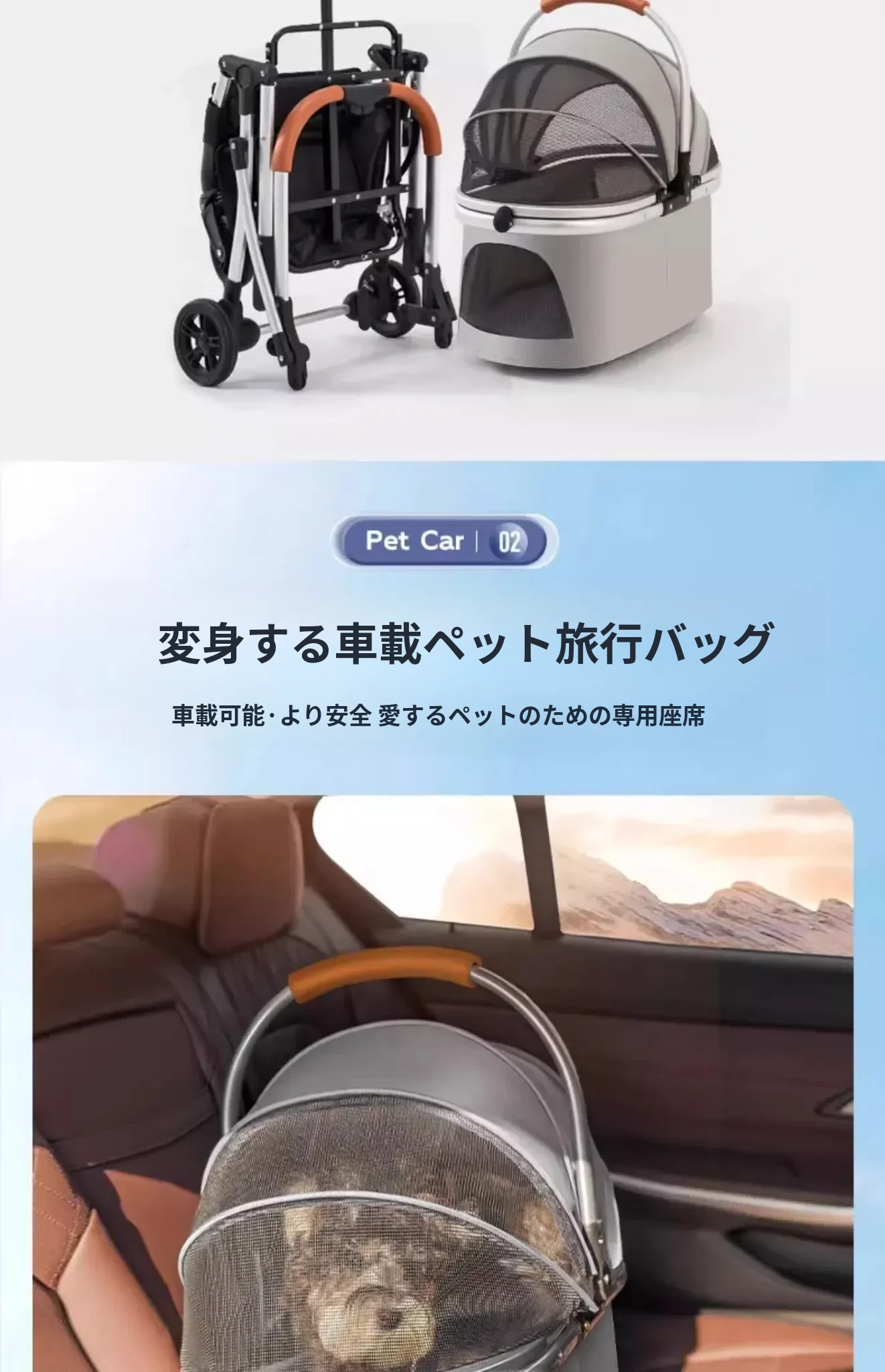灰色【折りたたみ可能・分離型 ママバッグ付き】推奨体重40ポンド以下のペット