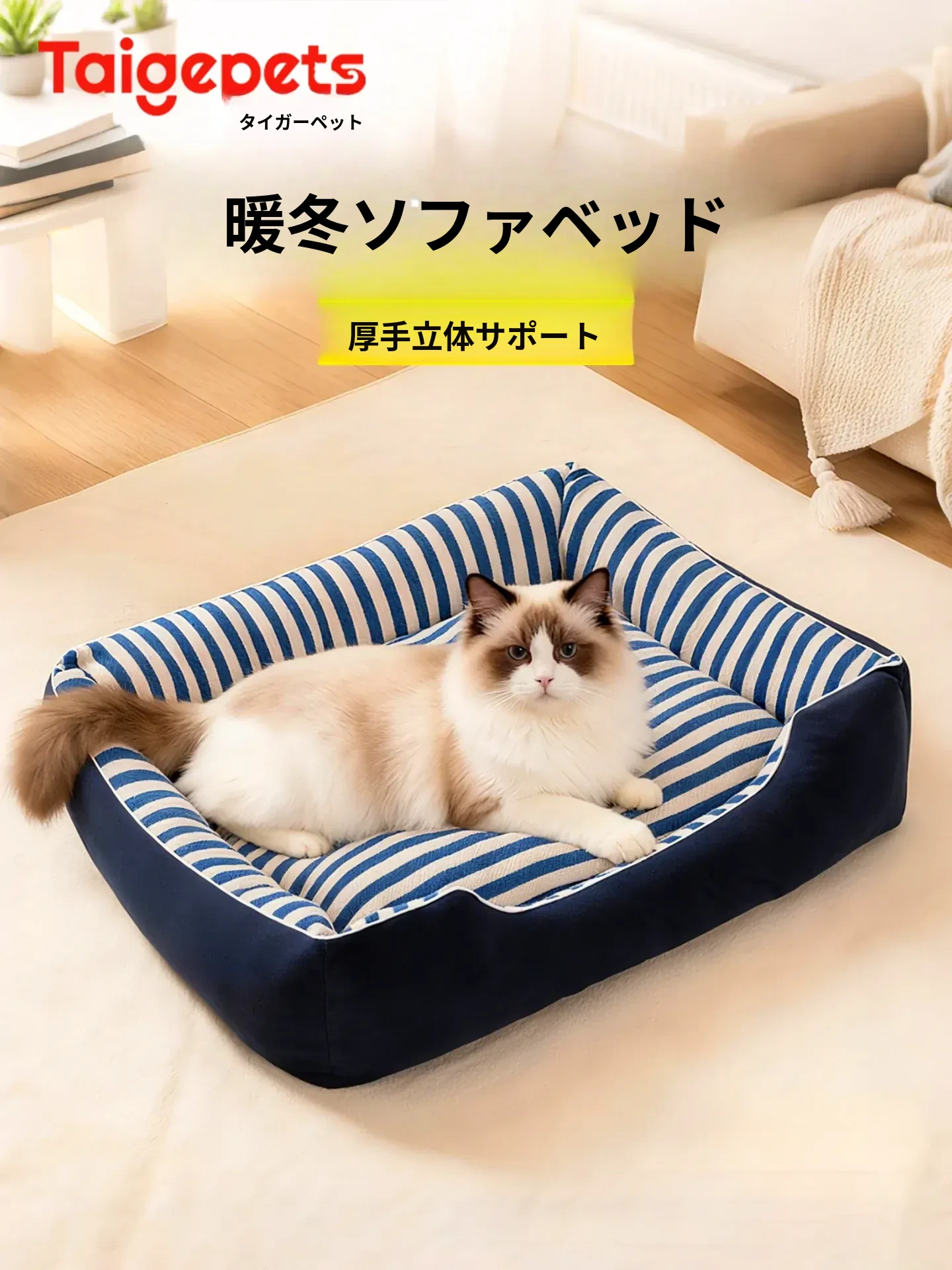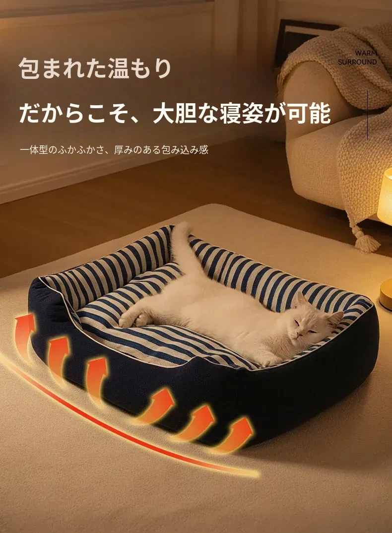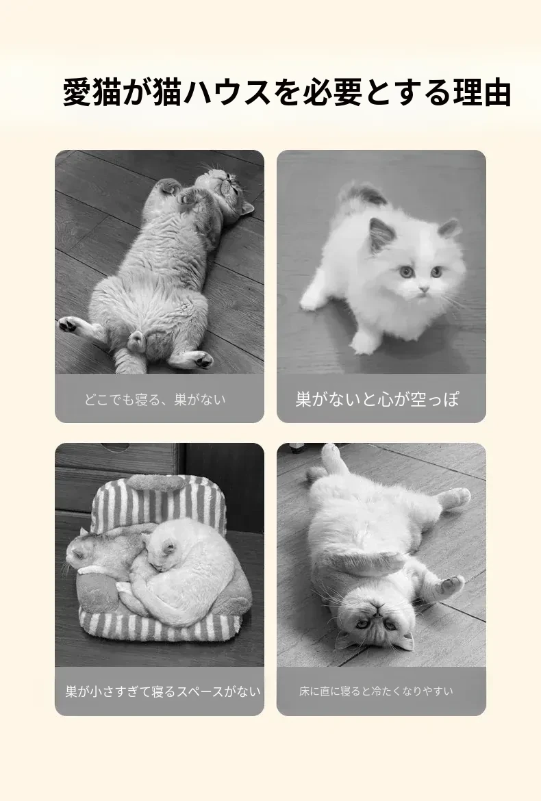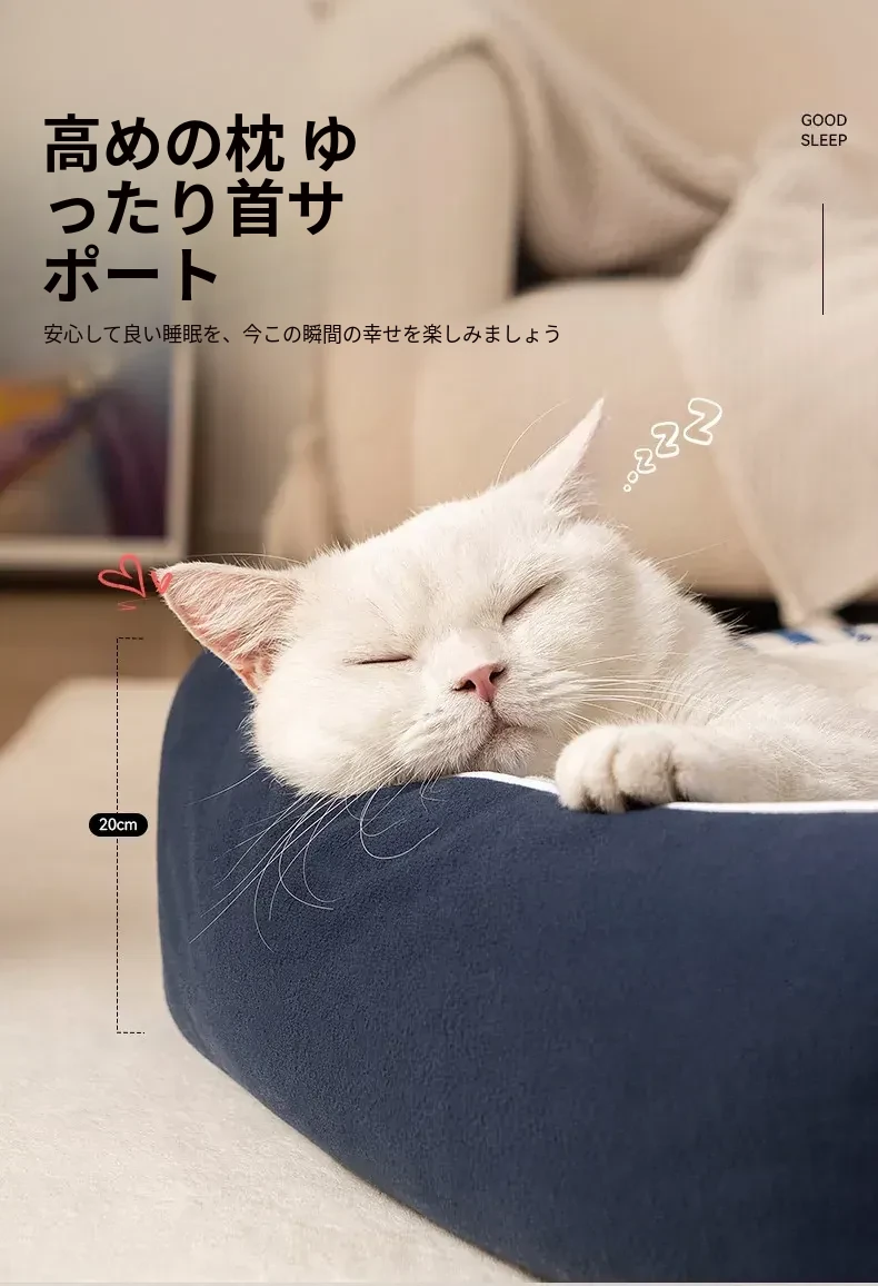 冬にぴったり!洗える新作の猫ベッド、4シーズン対応の厚手マットで快適&暖かい。首を守るデザインで、愛猫も安心してぐっすり眠れるソファ型猫ハウス!