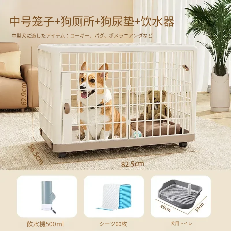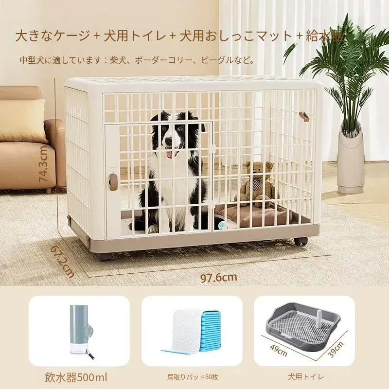 ✅人気商品4点セット【中号ケージ+犬用トイレ+60枚おむつパッド+給水器】