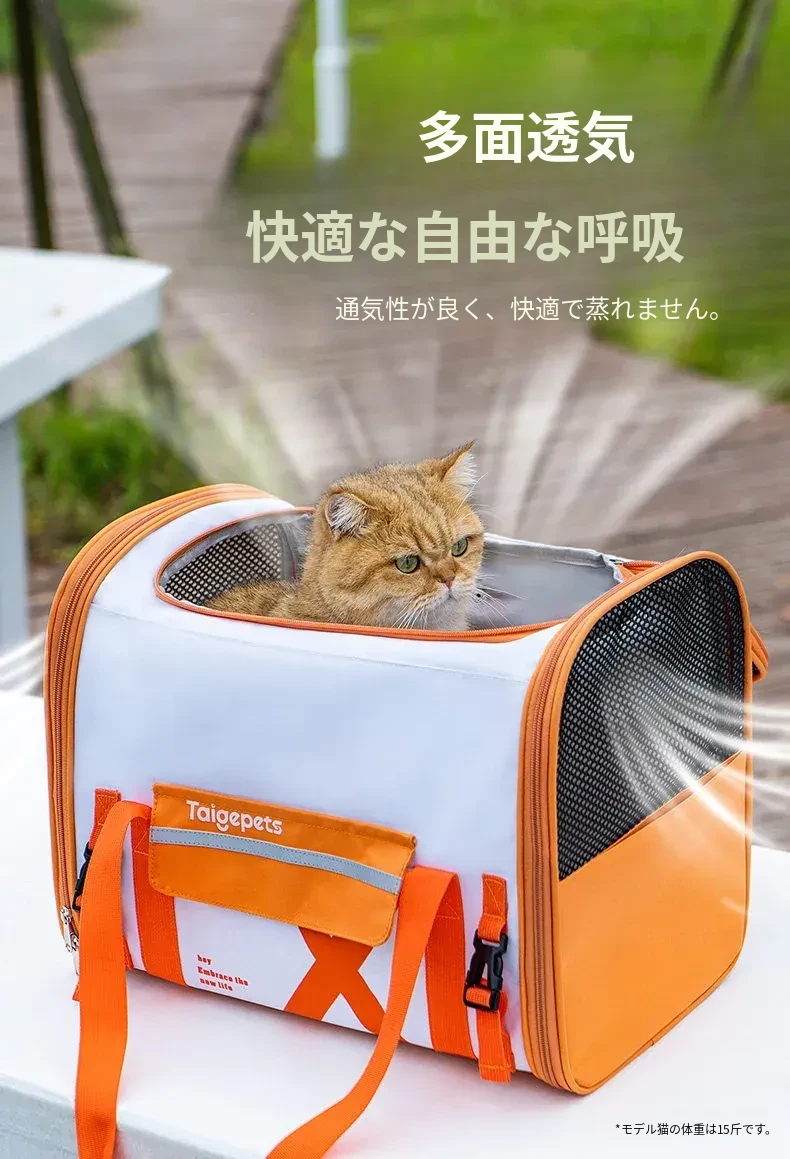 通気性抜群!猫ちゃんも安心してお出かけ♪ 大容量のペットキャリー・ショルダーバッグ - ストレスフリーで犬や猫も快適に移動できる!
