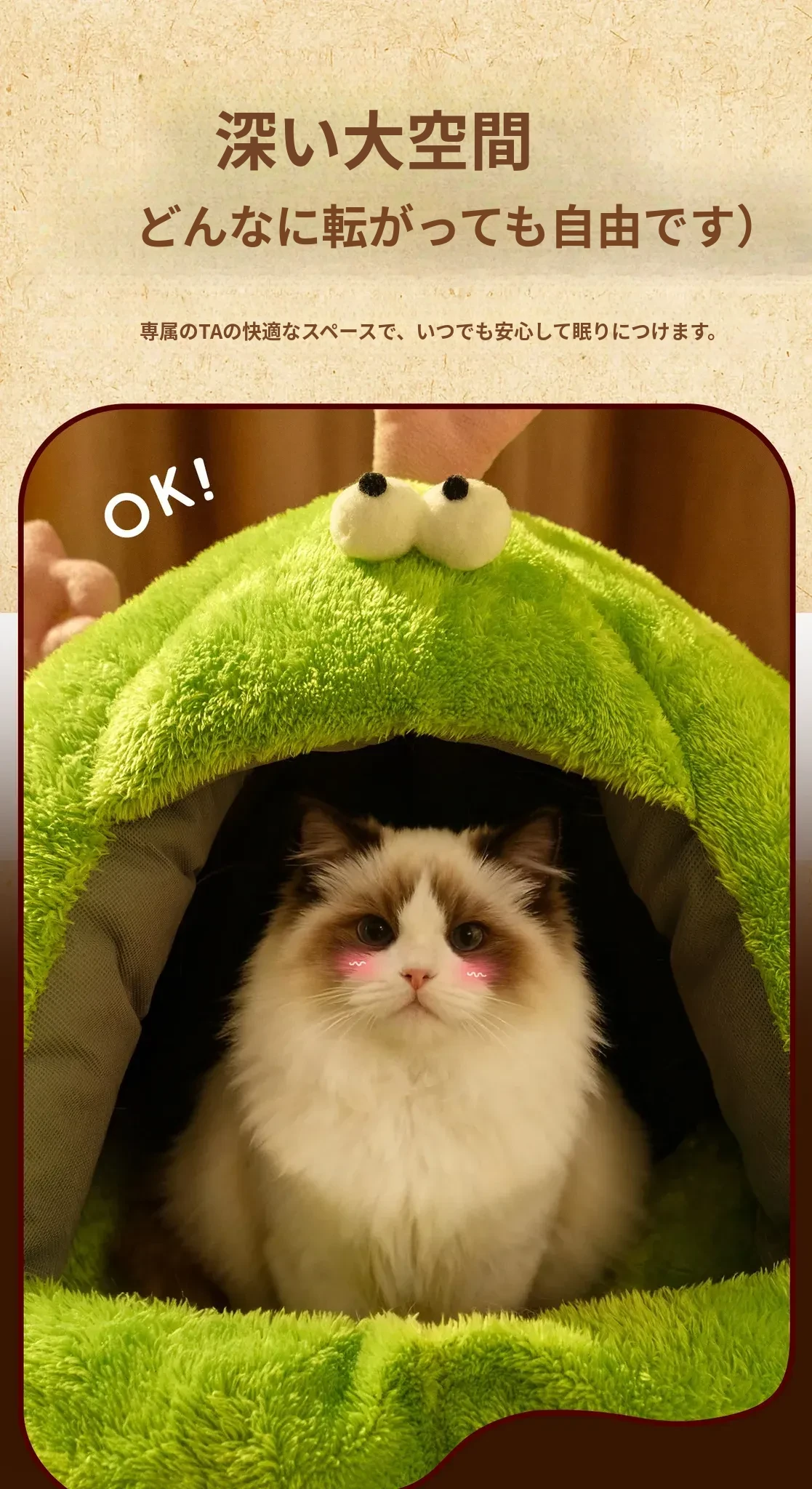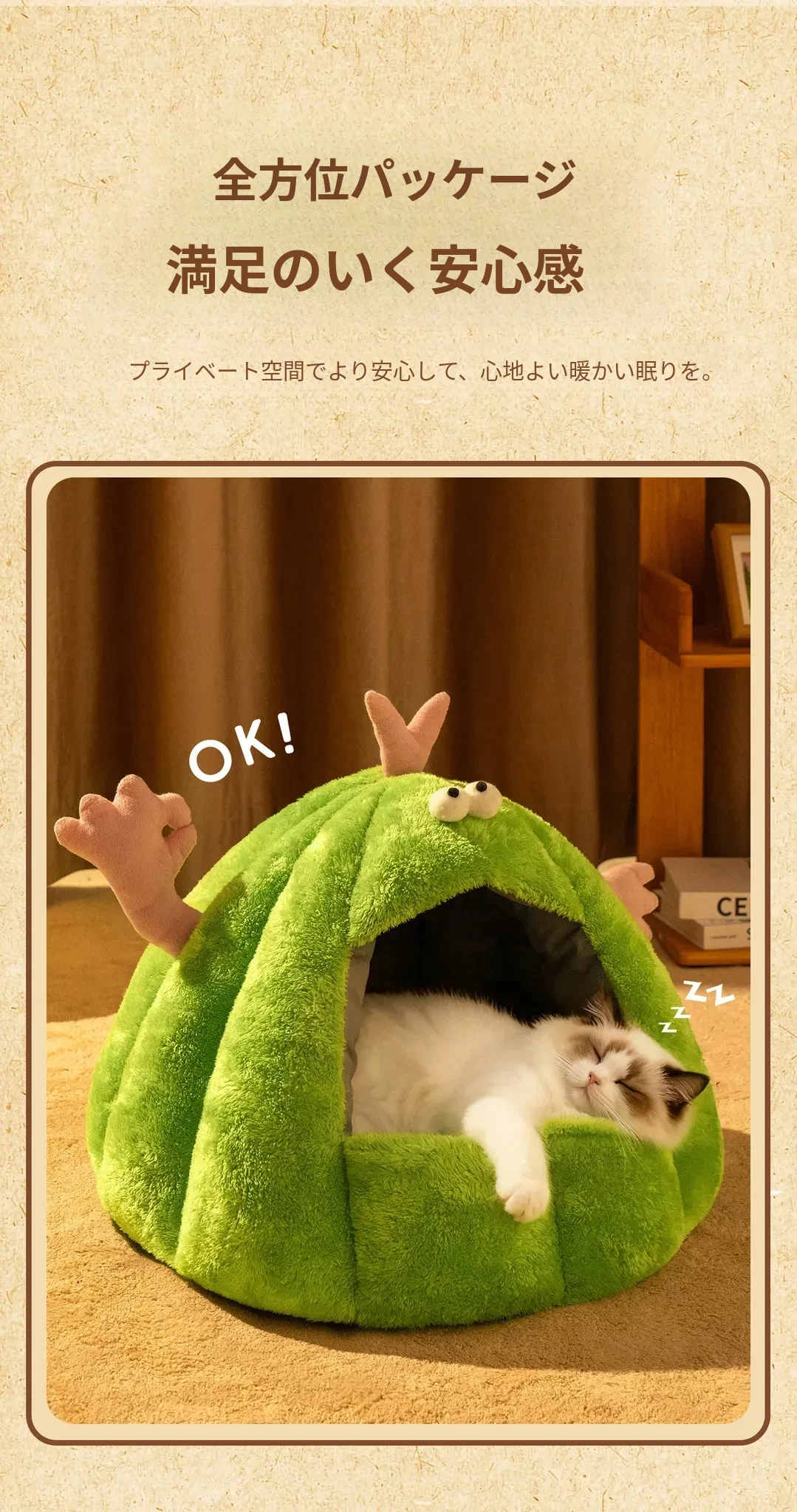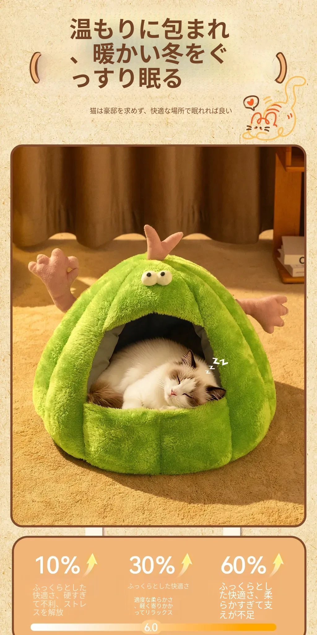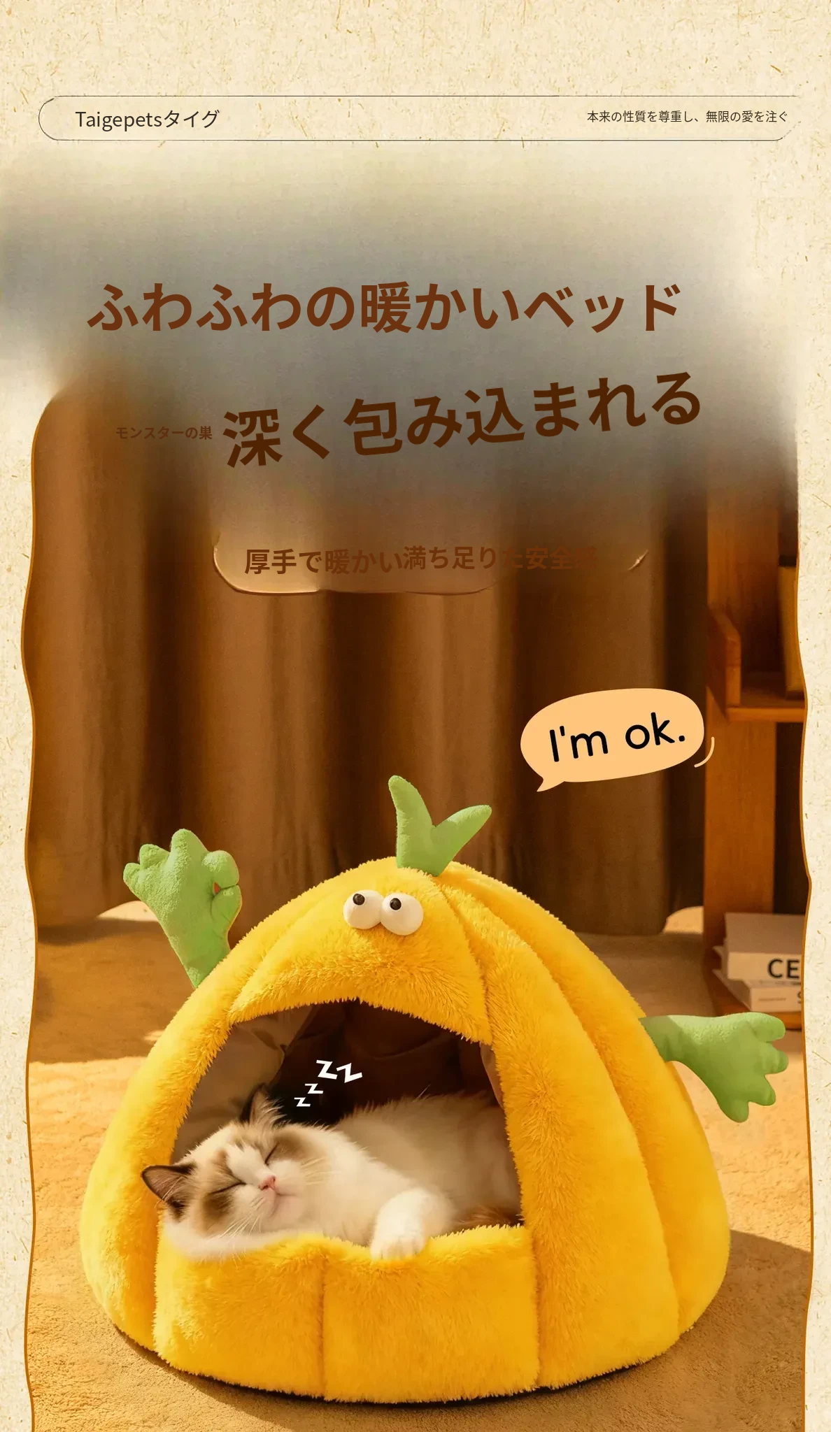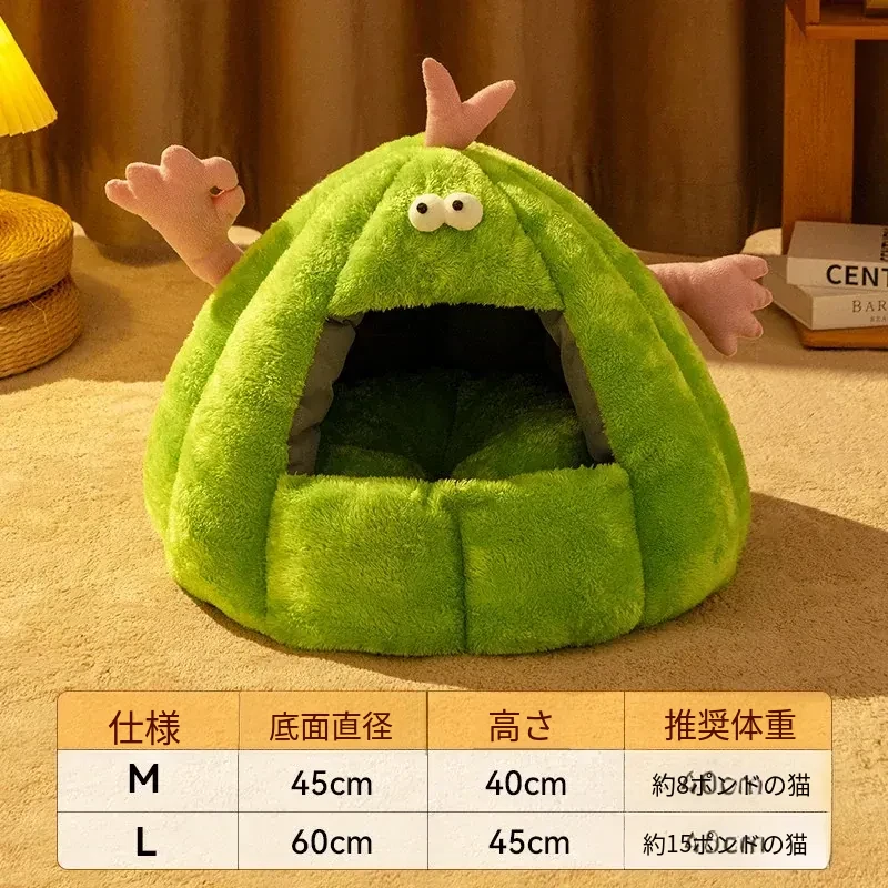 Taigepets_2025新作!ふわふわの小怪獣キャットハウス、冬の暖かさをキープ!厚手で安心感抜群の封閉式デザイン、愛猫の快適な睡眠をサポートします。冬の必需品、ぜひお見逃しなく!