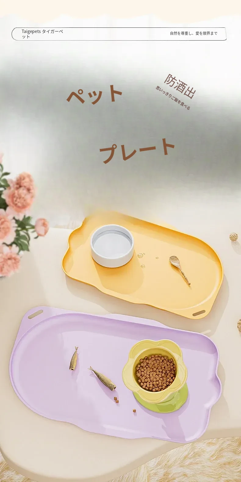 ペット専用防水滑り止めマット|大サイズの猫・犬用フードマット|食事を楽しく!おしゃれで汚れにくいデザイン|キャットボウル・ドッグボウル用完璧なサポートマット
