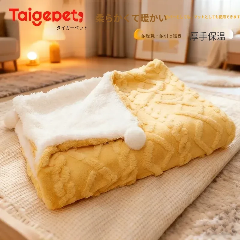 ペット用毛布 猫ちゃんも大満足!四季対応のふんわりスリープマット 冬も暖かい!快適な猫ベッド・犬用マットとして最適!柔らかなコットン素材で、愛するペットに至福の眠りを提供します。