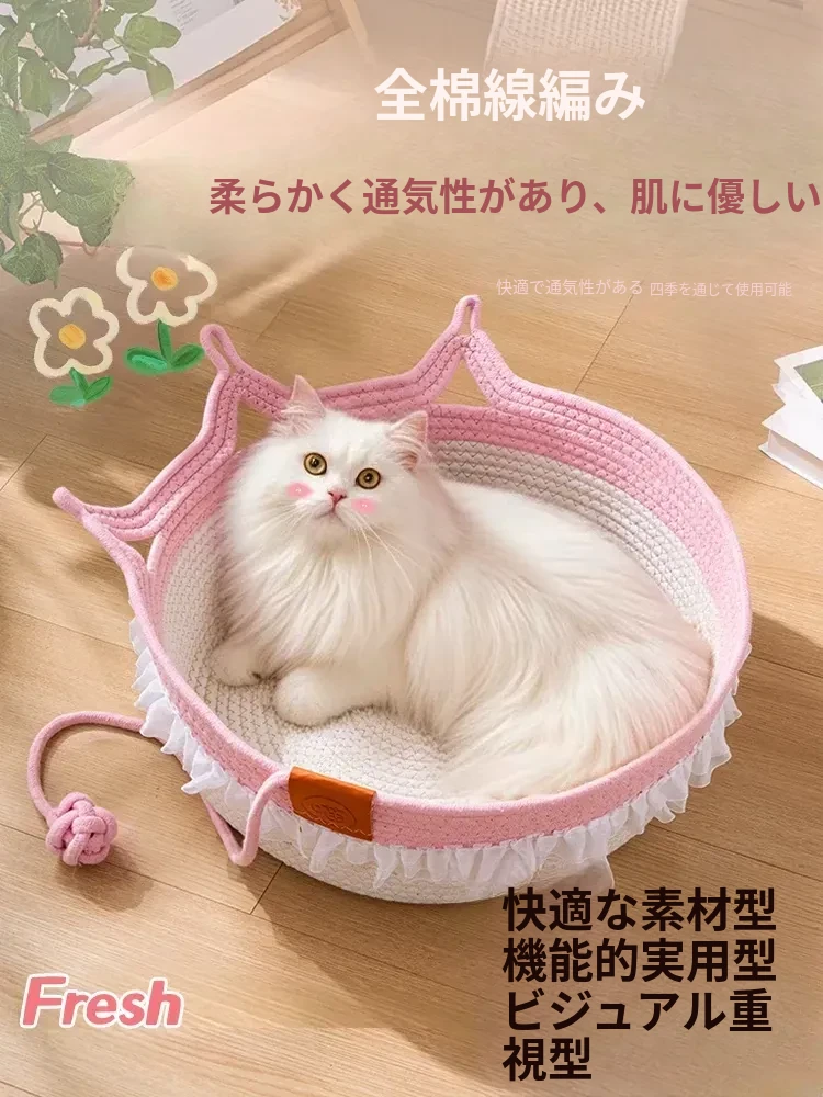 冬季にぴったり!愛猫のためのプリンセスデザインの木製ペットベッド。小さな子猫から大きな猫まで快適に眠れる、地面から離れた暖かいベッド。快適さとスタイルを兼ね備えた猫用品!