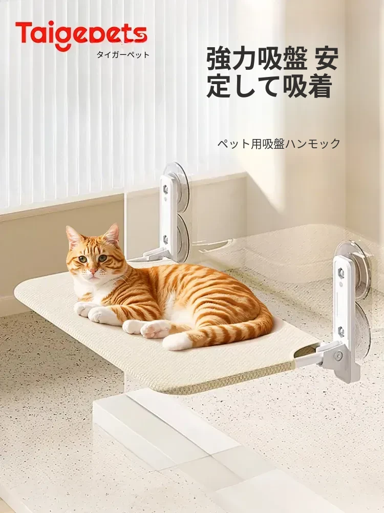 折りたたみ式吸盤付き猫吊り床 - 窓辺で日向ぼっこ!広々サイズでふわふわなクッション、バルコニーやガラスにぴったりのハンギングバスケット。愛猫のリラックスタイムを演出します!