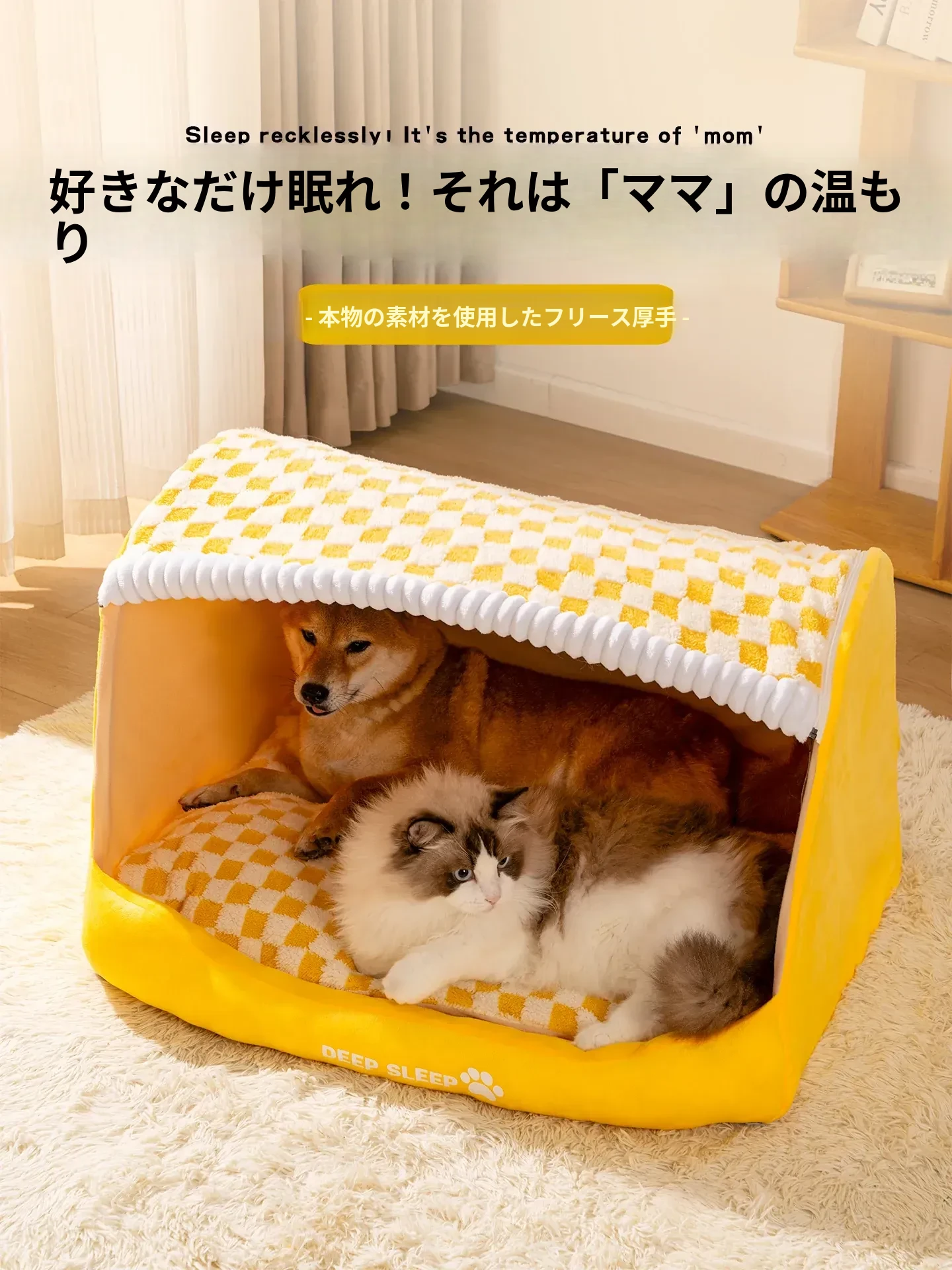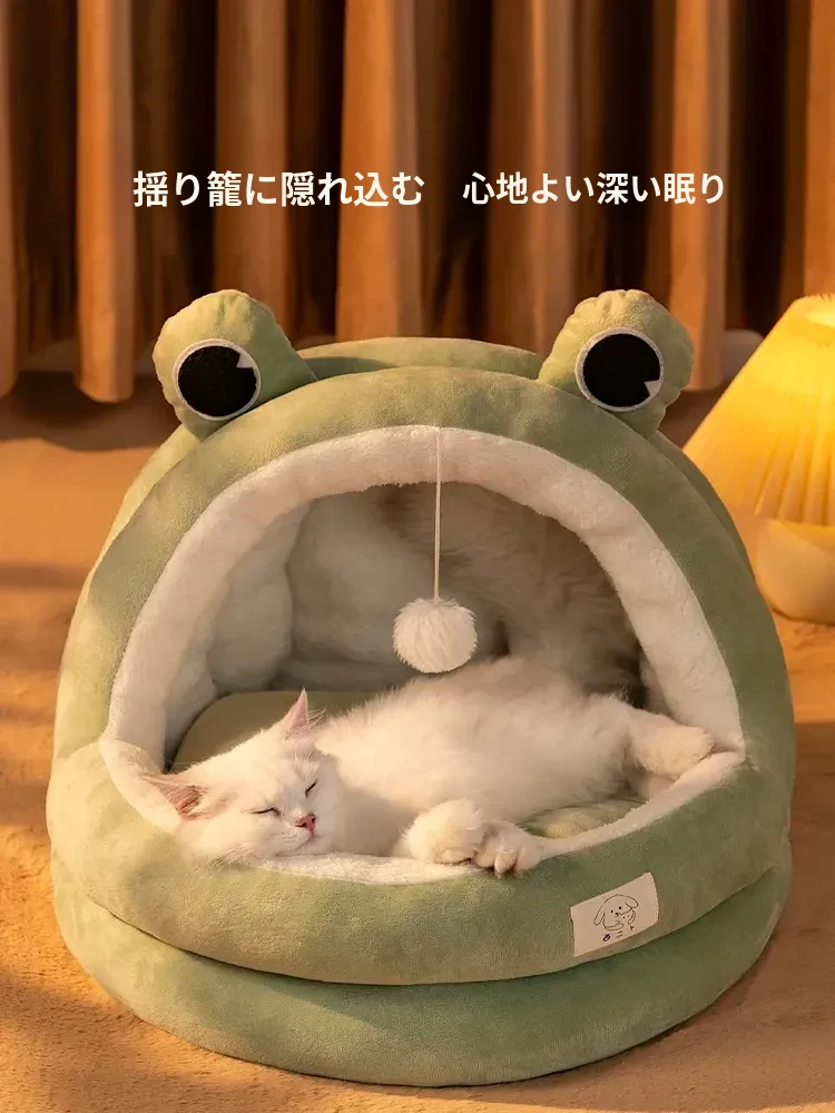 冬の猫用ハウス|厚手で暖かい半密閉式デザイン|洗えるから清潔!|冬でも安心して眠れる猫ちゃんのためのベッド|四季に使える万能タイプ