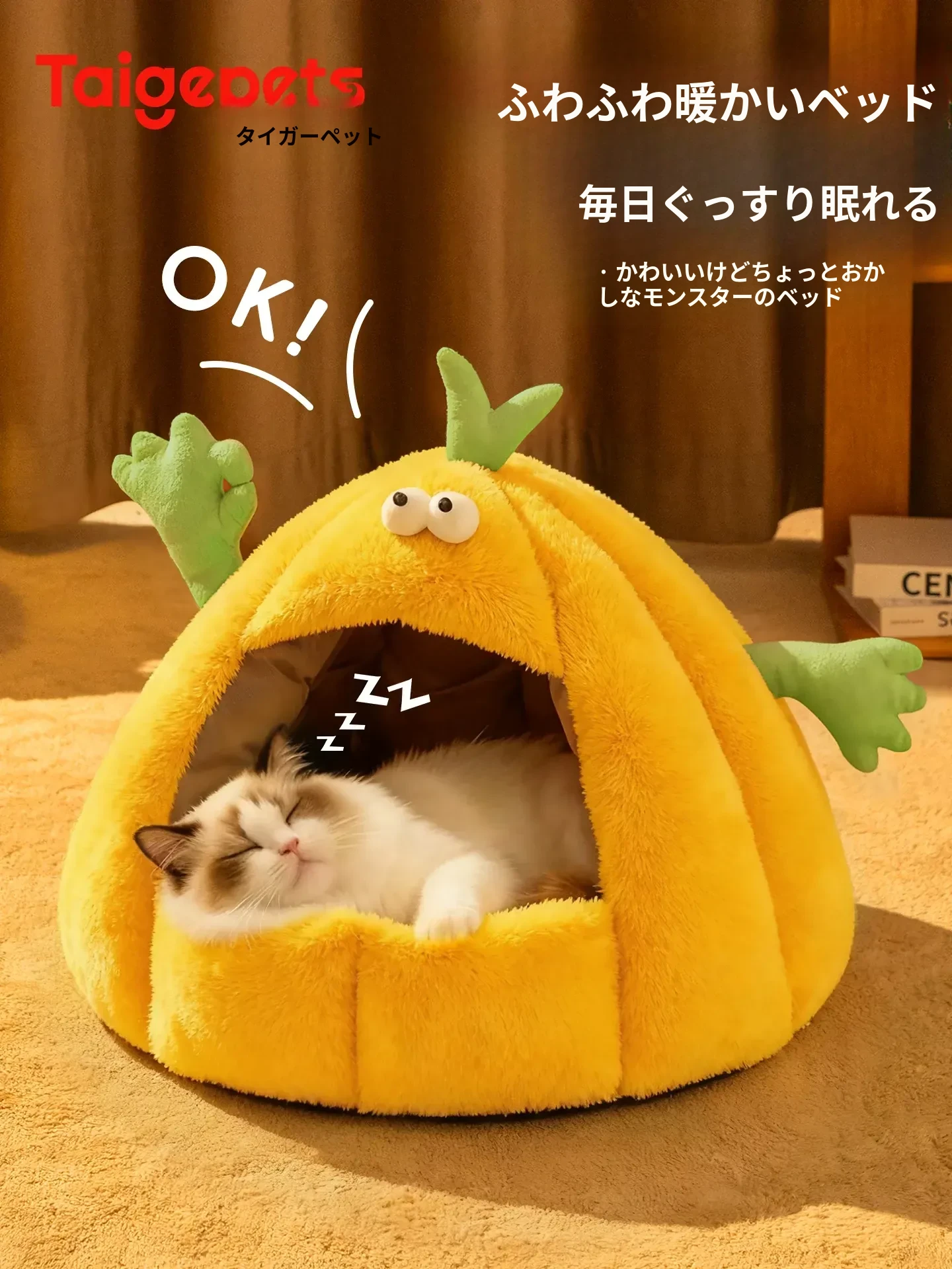 Taigepets_2025新作!ふわふわの小怪獣キャットハウス、冬の暖かさをキープ!厚手で安心感抜群の封閉式デザイン、愛猫の快適な睡眠をサポートします。冬の必需品、ぜひお見逃しなく!