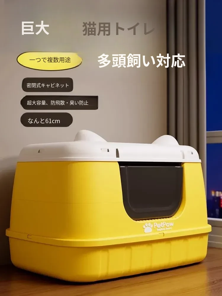 超大型密閉型猫トイレ|防臭・防飛び散り設計|猫ちゃん専用の新型トイレで快適なおさぼりタイムを!