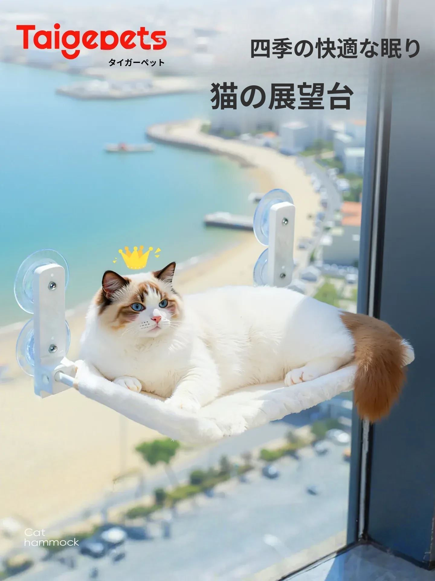 折りたたみ式猫ハンモック - 窓に取り付ける吸盤付き!猫ちゃんが日向ぼっこを楽しむための快適な寝床。冬も暖かい、猫のための絶景スポット!