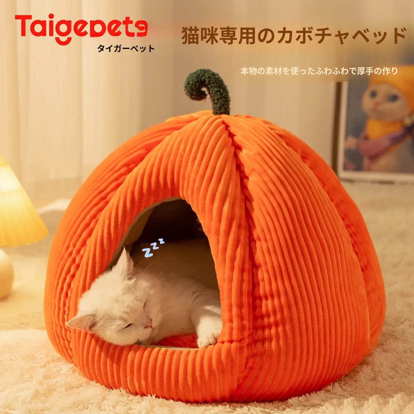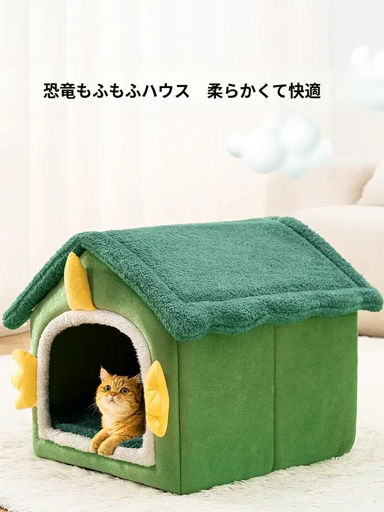 冬の寒さから守る!半封閉式の猫用ベッド - 安全感を与えるぬくもりの空間。四季に対応した小猫やペットに最適な快適な睡眠環境を提供します。猫ちゃんのための理想的な寝床です!