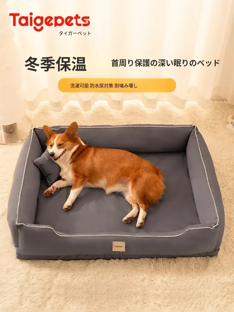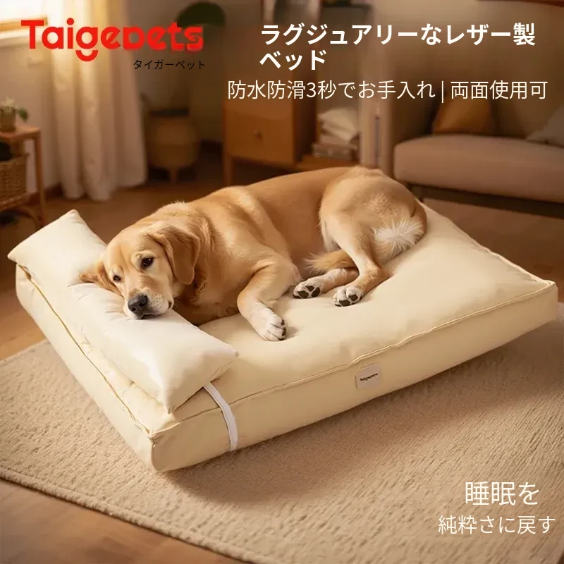 四季使える犬用ベッド!取り外し可能な洗えるデザインで、快適な睡眠空間を提供します。防水&耐噛み仕様のペット用レザークッションで、愛犬も安心してぐっすり眠れます!