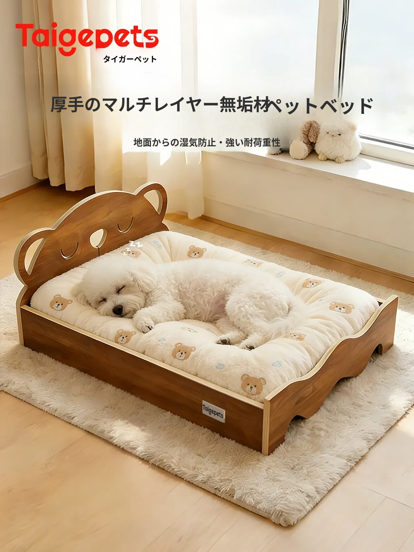 多層構造の天然木製犬用ベッド - 冬でも暖かさをキープ!小型犬やテディベア、ビションフリーゼに最適な離地式ペットソファ。快適な睡眠環境を提供します!
