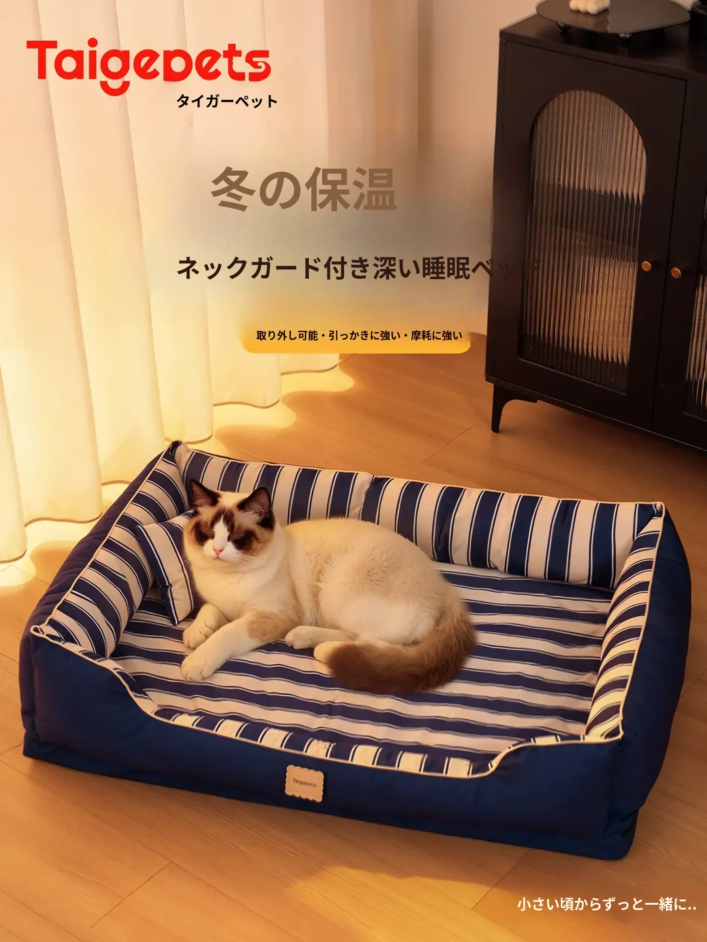 猫の冬用ふかふかベッド、暖かさ抜群!四季兼用・大サイズでゆったり、洗えるソファタイプの猫ハウス。寒い冬も快適に過ごせる、愛猫にぴったりのアイテムです!
