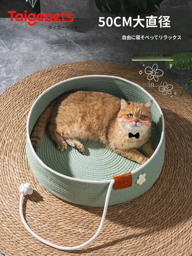 夏に最適!通年使える藤編み猫ベッド - 可愛い子猫も快適に眠れる新デザインのペット用寝床!涼しさとおしゃれを両立した理想の猫の隠れ家。