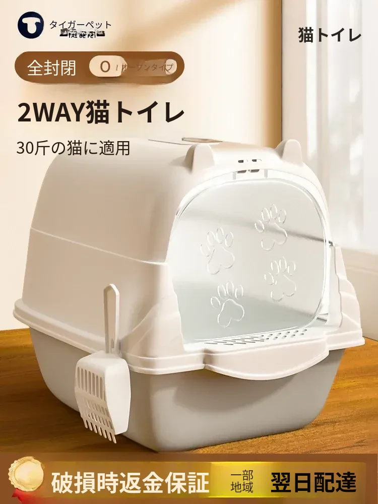 超大型密閉型猫トイレ|防臭・防飛び散り設計|猫ちゃん専用の新型トイレで快適なおさぼりタイムを!