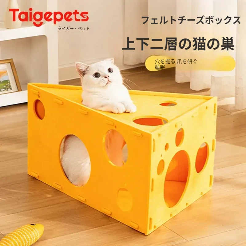 ふわふわの毛毡猫ハウス&爪研ぎ一体型!四季を通じて使える新しい二層構造の猫の隠れ家。上下に分かれたデザインで、愛猫に安心感と快適な眠りを提供します。