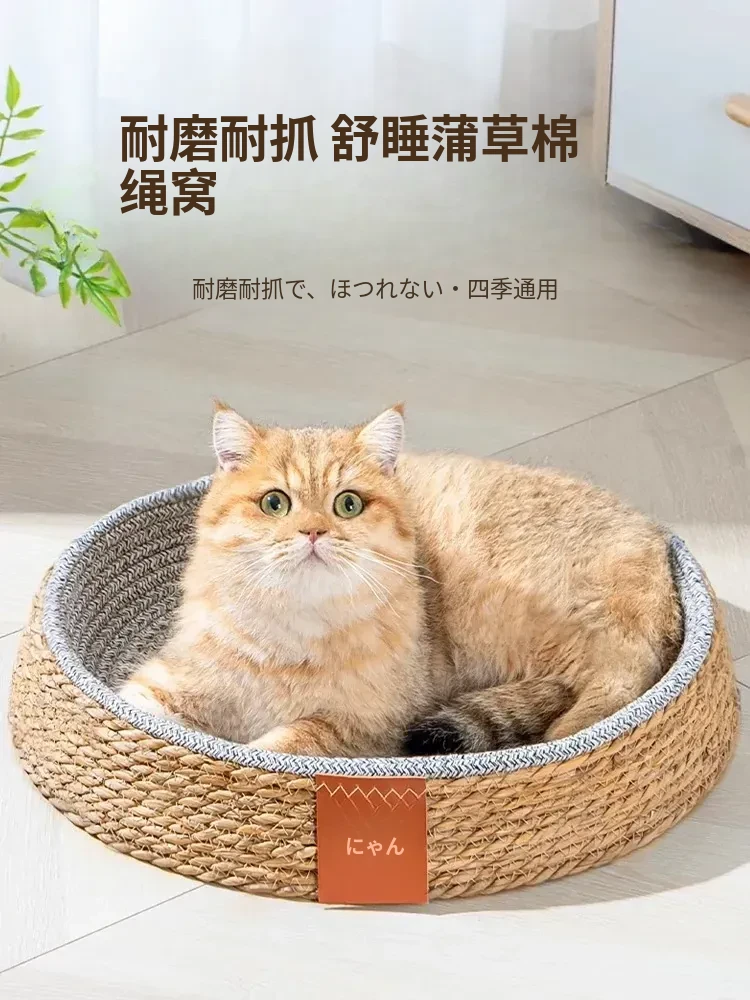 通気性抜群!夏に最適な藤編み猫ハウス - 4シーズン対応、ペット専用の人気猫ベッド。快適で耐久性があり、猫も犬も大満足のリゾート空間を提供します!