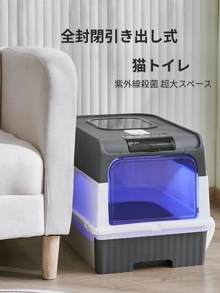 超大型全半封閉式猫砂盆 - UV殺菌機能付き!防止飛び散り&消臭効果抜群の猫ちゃんトイレ!清潔で安心な環境を提供します。