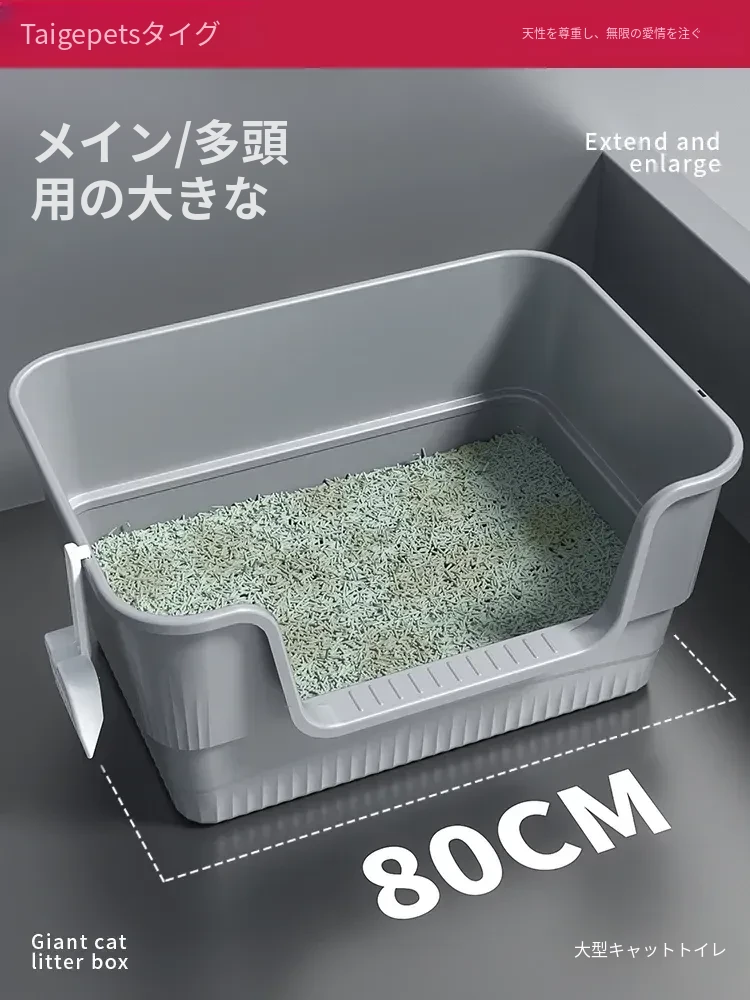 超大型猫砂トイレ!80cmの特大サイズで、外に飛び散らない設計。メインクーンにも最適な巨大な猫砂盆で、愛猫の快適なトイレタイムをサポートします!
