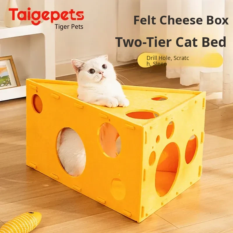 Cozy Dual-Layer Cat Cave & Scratching Post - All-Season Design with Two Levels for Your Feline's Comfort and Security