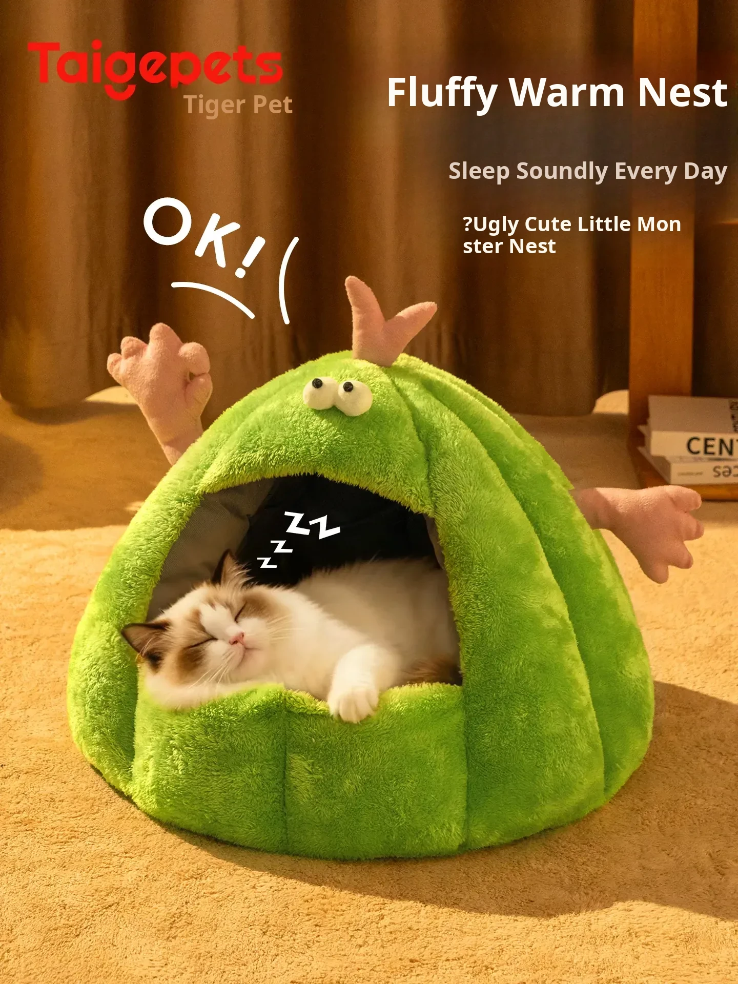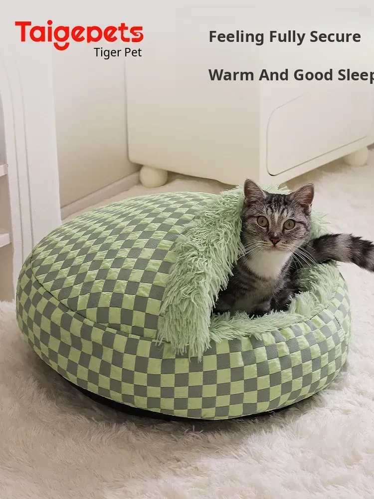 Cozy Winter Cat and Dog Bed - Semi-Closed Design for Warmth in Cold Seasons, Perfect for Pets to Snuggle Up in Blankets!