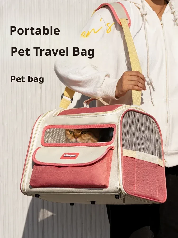 Stylish Large Capacity Cat Carrier Bag - Portable and Convenient for Outdoor Adventures with Your Feline Friend, Perfect for Dogs Too! Adjustable Crossbody and Shoulder Strap.