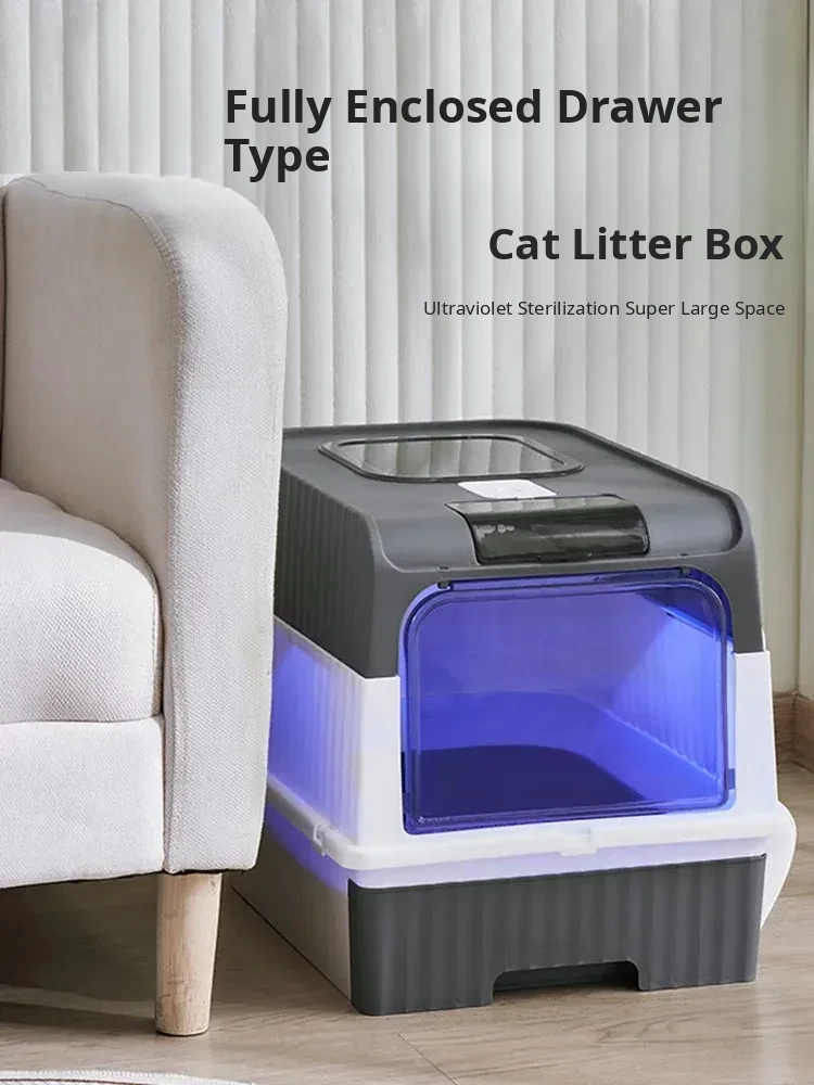 Extra Large Semi-Enclosed Cat Litter Box with UV Sterilization - Non-Smart, Splash-Proof, and Odor Elimination for a Clean and Fresh Cat Bathroom Experience!