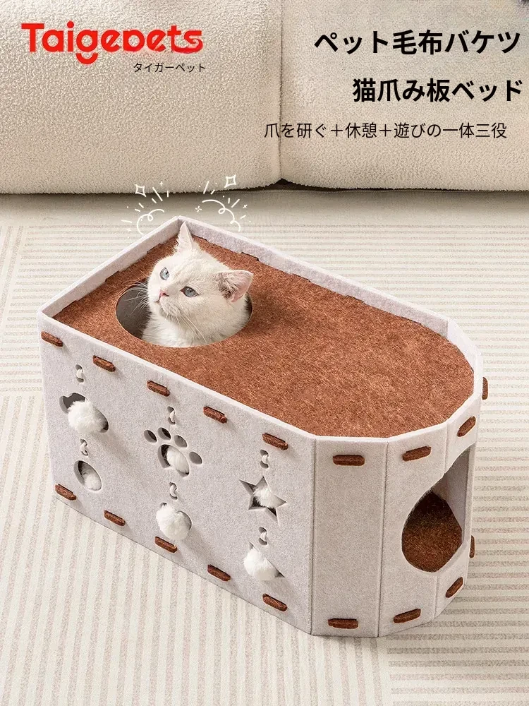 多機能キャットハウス&爪とぎボード!四季に対応した二重構造の安心感あるキャットドーム。上下2層のデザインで、愛猫が快適にくつろぎ、遊びながら爪を研ぐことができます。あなたの猫ちゃんに最適な居場所を提供します!