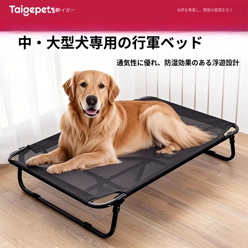 犬用行軍ベッド 通気性抜群のネット布製 ゴールデンレトリバーにも最適!四季を通じて使用可能な浮かせたデザインで、中小型犬や猫にもぴったりの夏用防湿ベッド。快適な寝床で愛犬・愛猫を癒しましょう!
