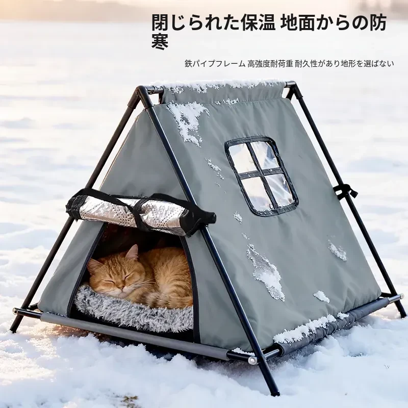ペット用テント型キャットハウス|四季対応・洗濯可能・冬の暖かさを保つ猫用住まい|野良猫にも最適!あなたの愛猫に快適な空間を提供します!
