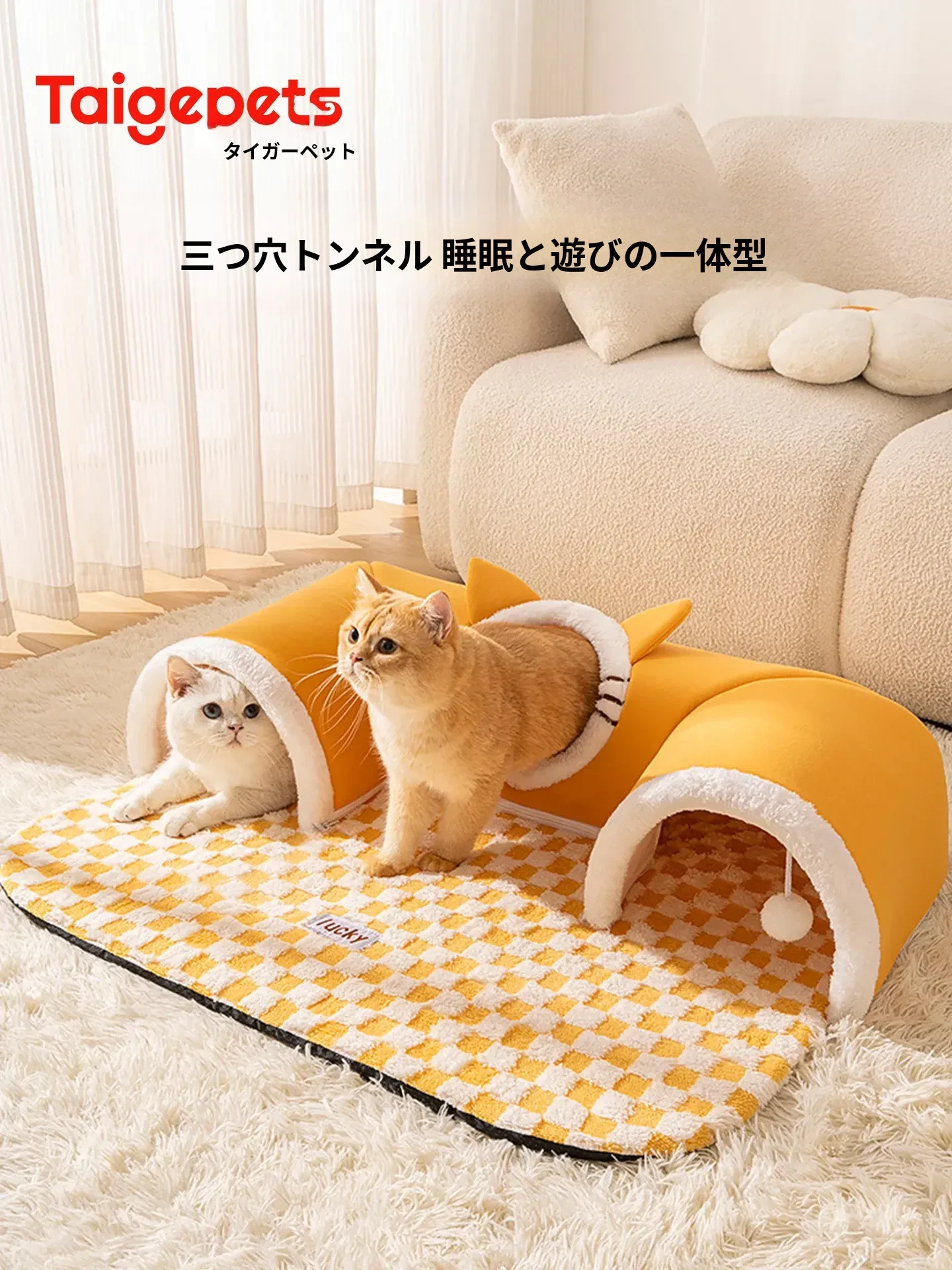 四季使える猫の隠れ家トンネル!冬の寒さから守る暖かい閉じ込め空間で、安心感を与える多頭飼いにも最適な猫用マット付き。あなたの猫ちゃんに最高の居場所を提供します!