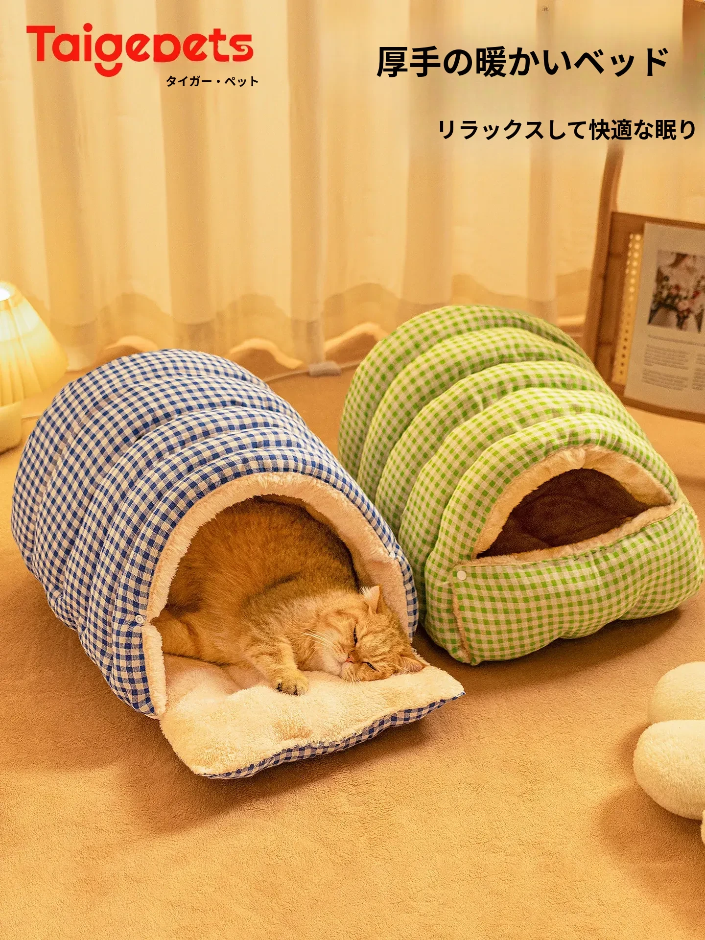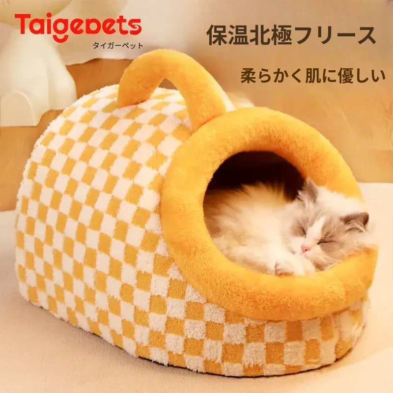 2025年新作!冬の保温性抜群の厚手猫ハウス - 安全感満載の閉じられたデザインで、寒い季節にぴったり!愛猫のための快適な隠れ家テントで、暖かく安心してお休みいただけます。