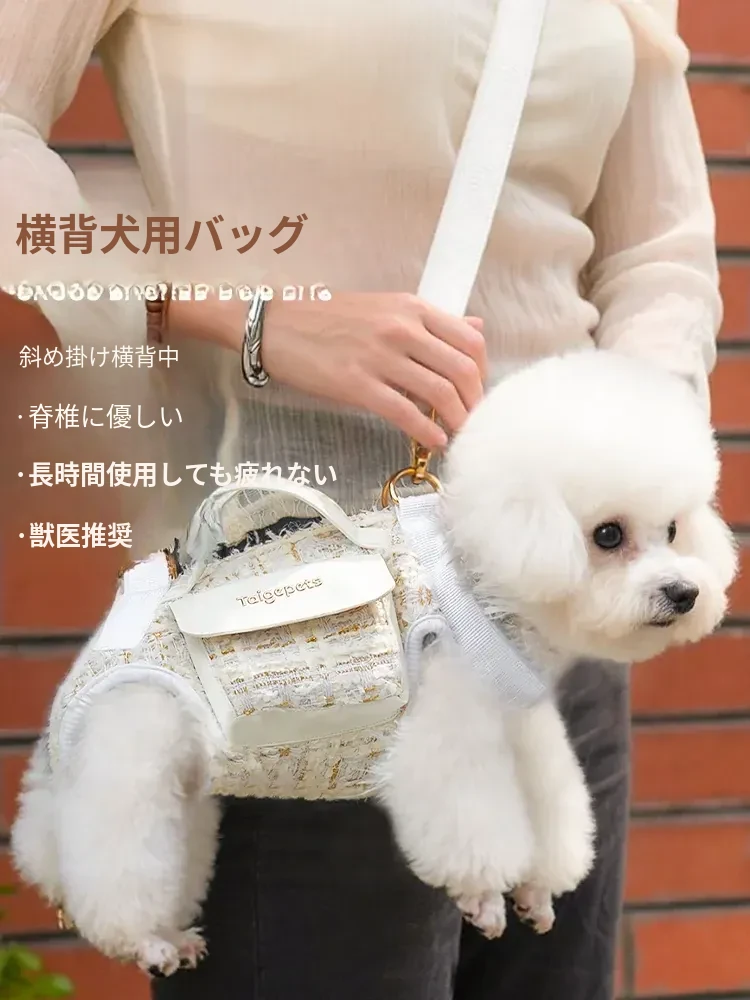 小香風ペット用横型バッグ - おしゃれで軽量、犬や猫のお出かけに最適!斜め掛けで楽々、愛犬とのお散歩をスタイリッシュに楽しもう!