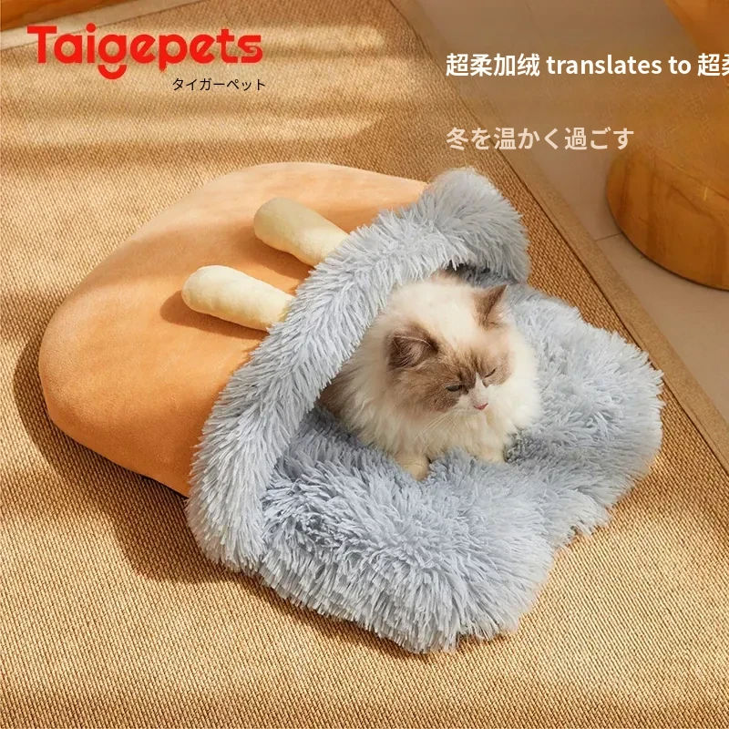 冬の暖かさを保つ厚手の半封閉型猫ベッド - 四季通用、安心感を提供する猫用スリーピングバッグ。寒い季節でも愛猫をしっかり守ります!
