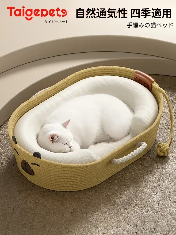 通気性抜群!夏に最適な藤編み猫ハウス - 4シーズン対応、ペット専用の人気猫ベッド。快適で耐久性があり、猫も犬も大満足のリゾート空間を提供します!