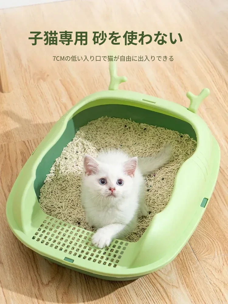 小型子猫専用!半密閉式で飛び散り防止の猫トイレ - 臭い対策もバッチリ!可愛いペットのための必需品!