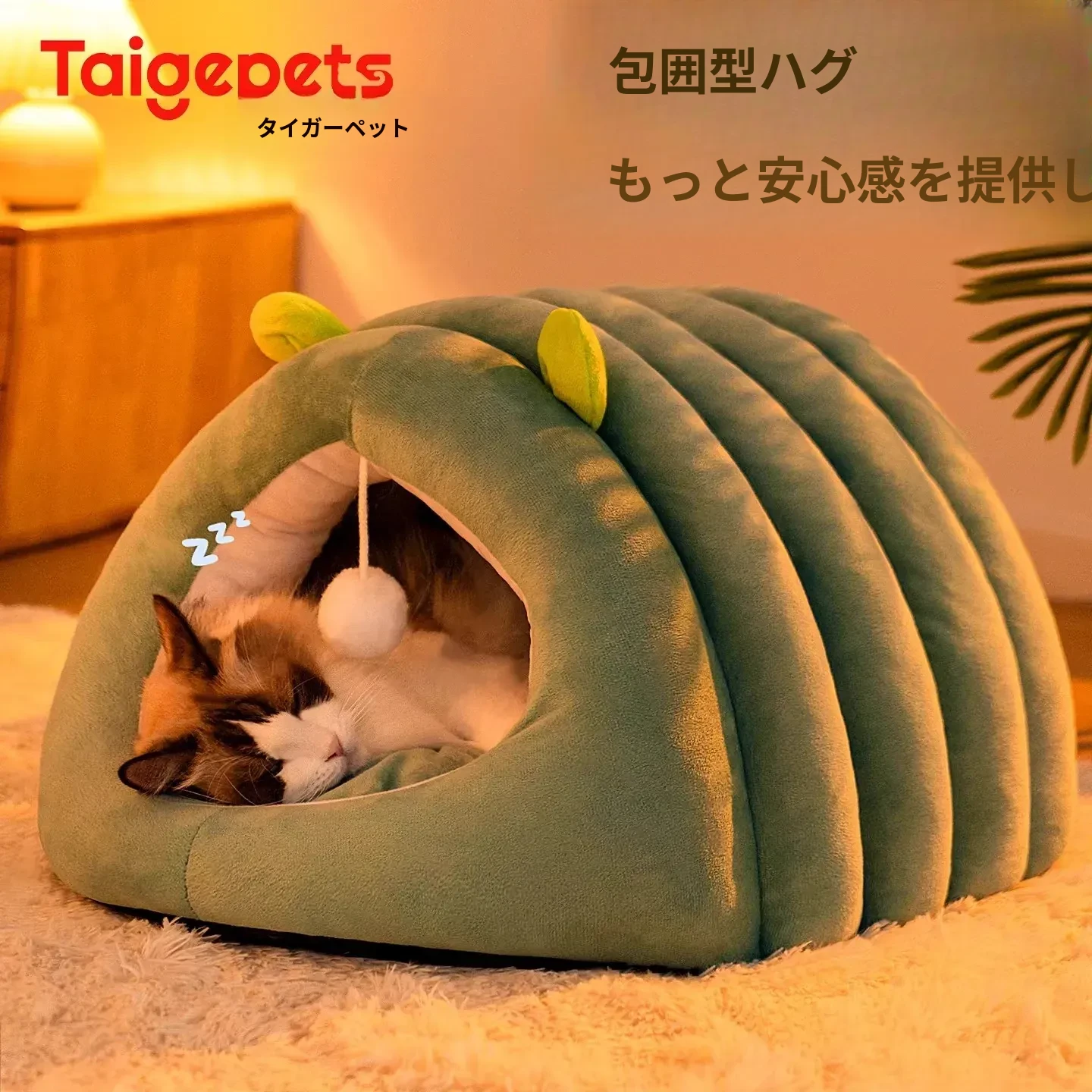 冬に最適!大きな猫用暖かい隠れ家 - 四季使える安心の密閉型猫ベッド。愛猫の心地よい眠りをサポートします!