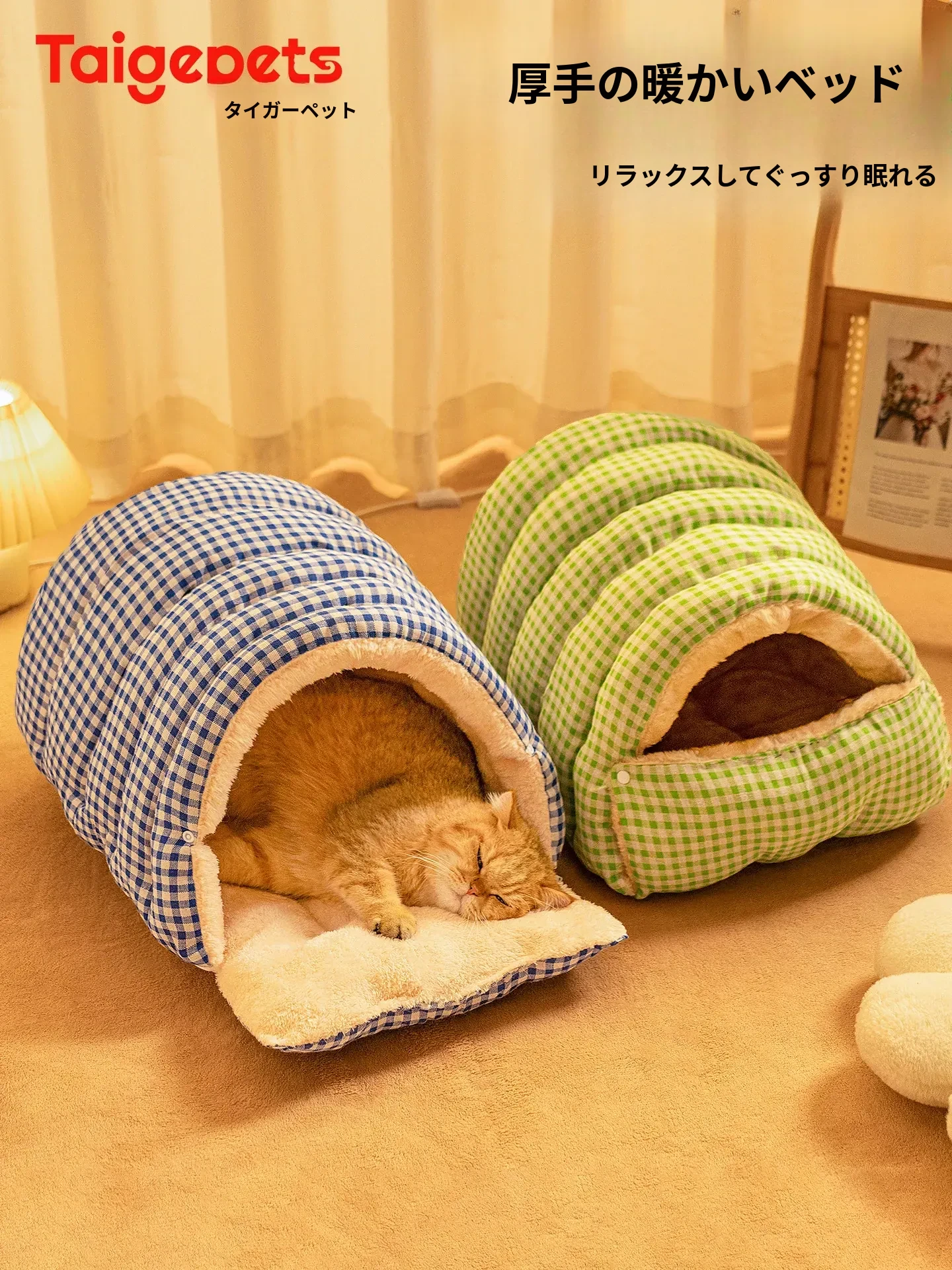 冬用厚手猫ハウス|安心感を提供する封閉型デザイン|大きな猫もゆったり眠れる暖かいスリーピングバッグ型猫ベッド|猫ちゃんの隠れ家に最適!