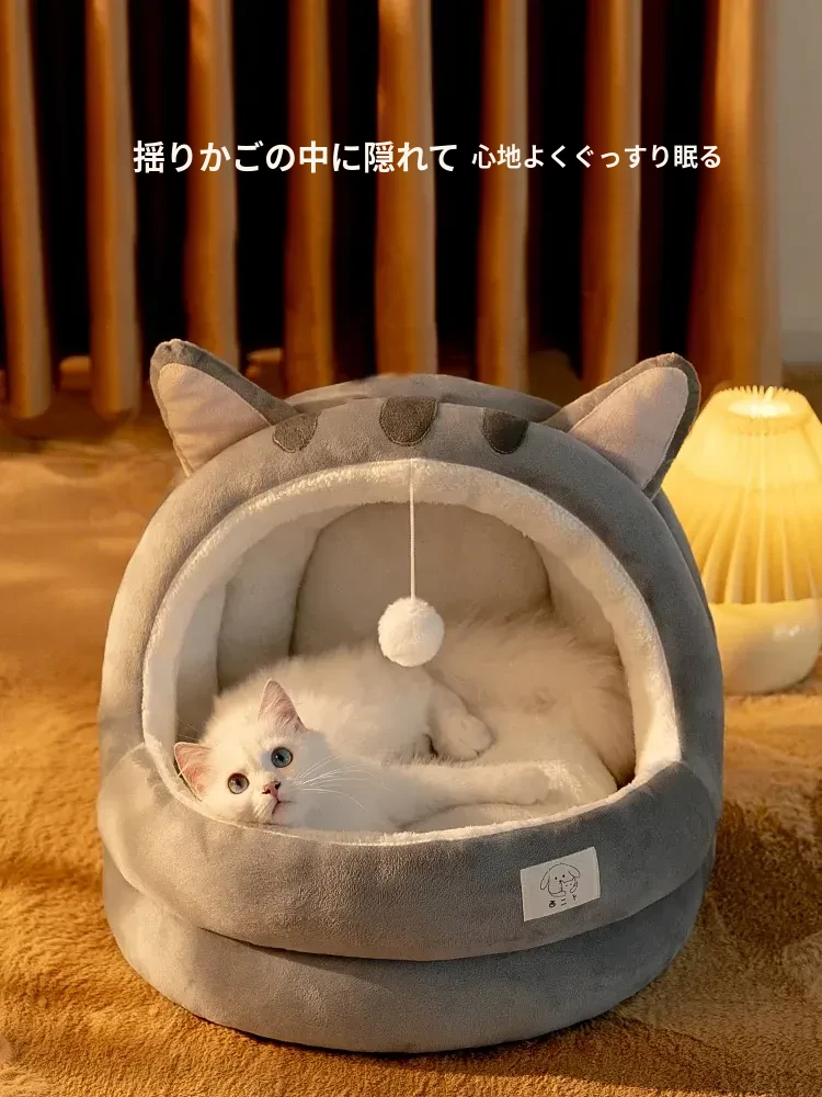 冬の寒さをしっかり防ぐ!四季対応の封閉式キャットベッド - 幼い猫ちゃんも安心して快適に過ごせるペット用保温アイテム。愛するペットに最適な冬の住まいを提供します!