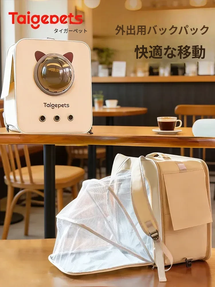 猫用キャリーバッグ - 軽量・大容量でお出かけも安心!犬猫が顔を出せる設計、ストレス軽減&社会化トレーニングに最適。夏の通気性抜群で、愛するペットと快適なお出かけを楽しもう!